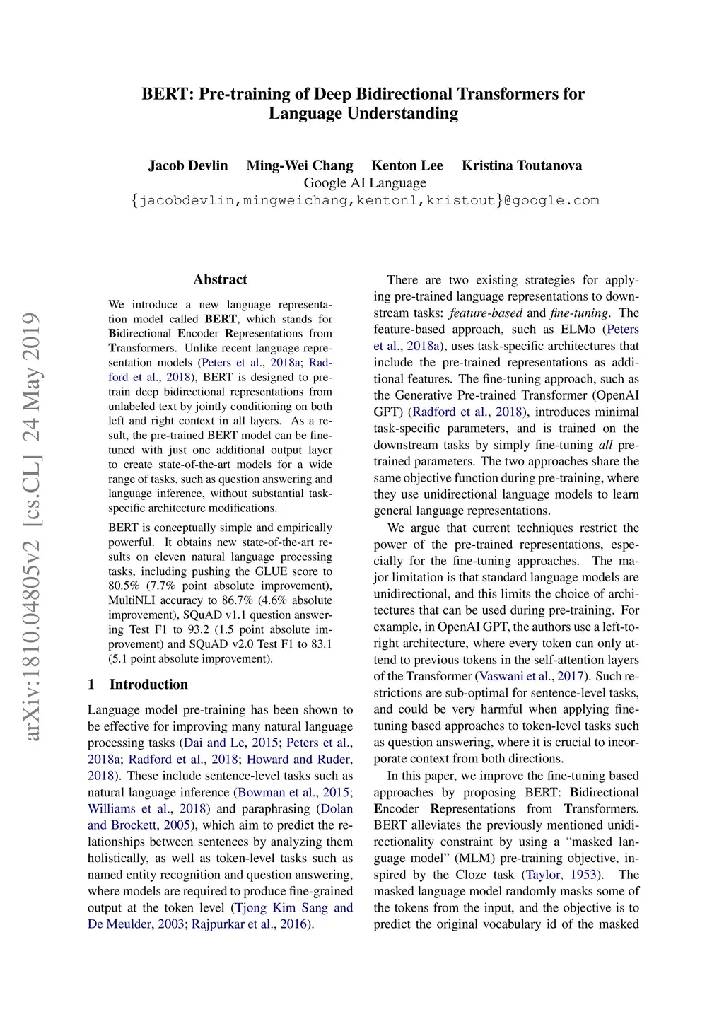 BERT: Pre-training of Deep Bidirectional Transformers for Language