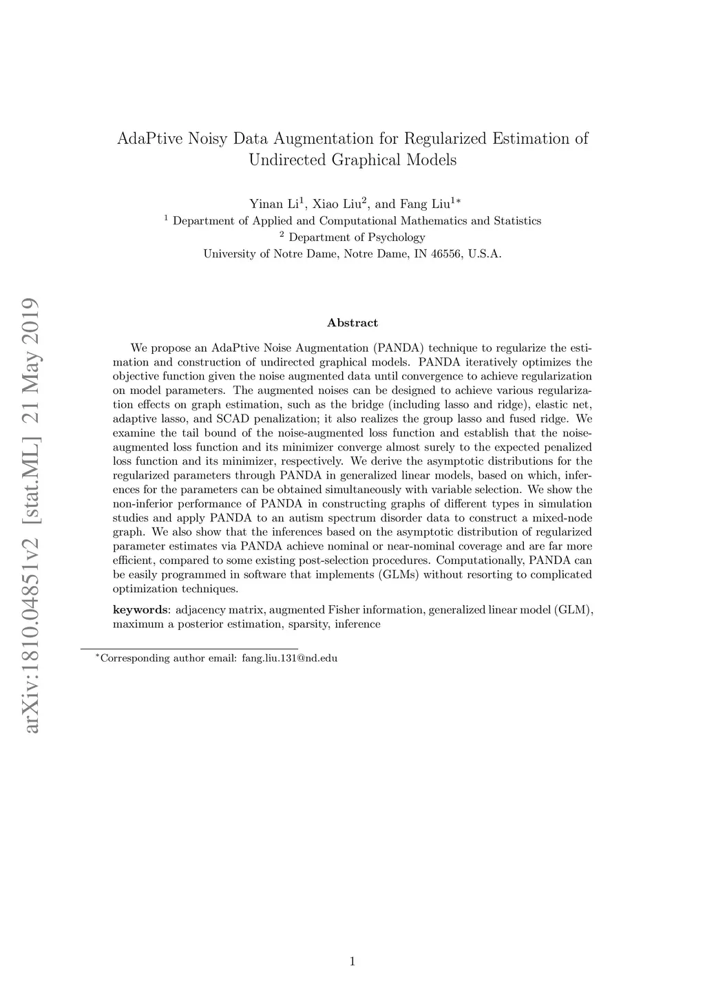 PANDA: AdaPtive Noisy Data Augmentation for Regularization of Undirected