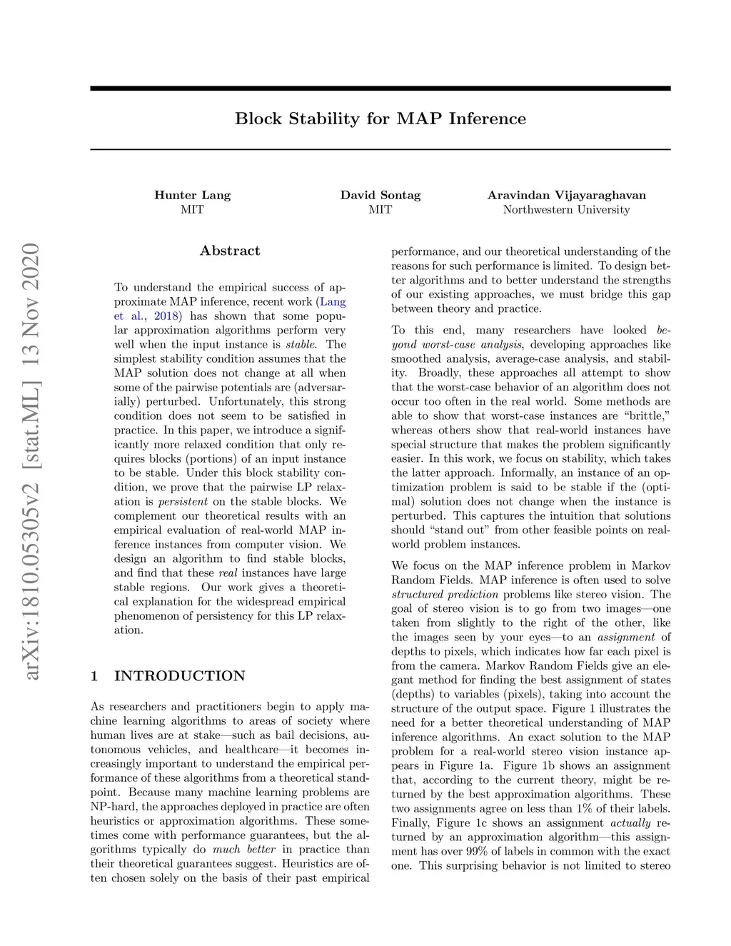 To understand the empirical success of approximate MAP inference, recent work (Lang et al., 2018) has shown that some popular approximation algorithms perform very well when the input instance is stable. The simplest stability condition assumes that the MAP solution does not change at all when some of the pairwise potentials are (adversarially) perturbed. Unfortunately, this strong condition does not seem to be satisfied in practice. In this paper, we introduce a significantly more relaxed condition that only requires blocks (portions) of an input instance to be stable. Under this block stability condition, we prove that the pairwise LP relaxation is persistent on the stable blocks. We complement our theoretical results with an empirical evaluation of real-world MAP inference instances from computer vision. We design an algorithm to find stable blocks, and find that these real instances have large stable regions. Our work gives a theoretical explanation for the widespread empirical phenomenon of persistency for this LP relaxation.