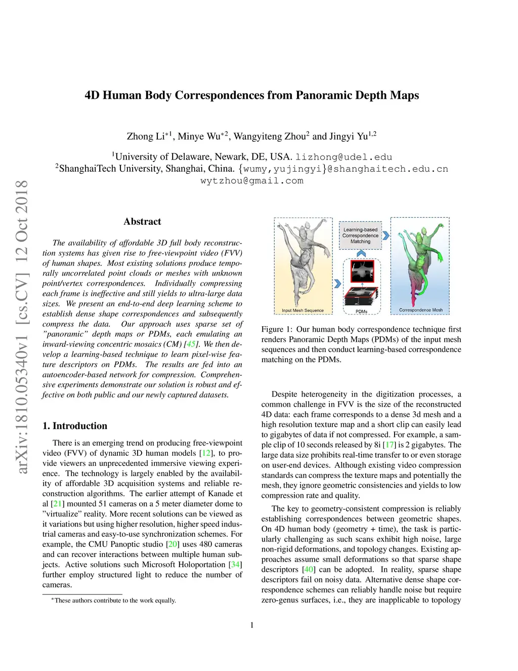4D Human Body Correspondences from Panoramic Depth Maps