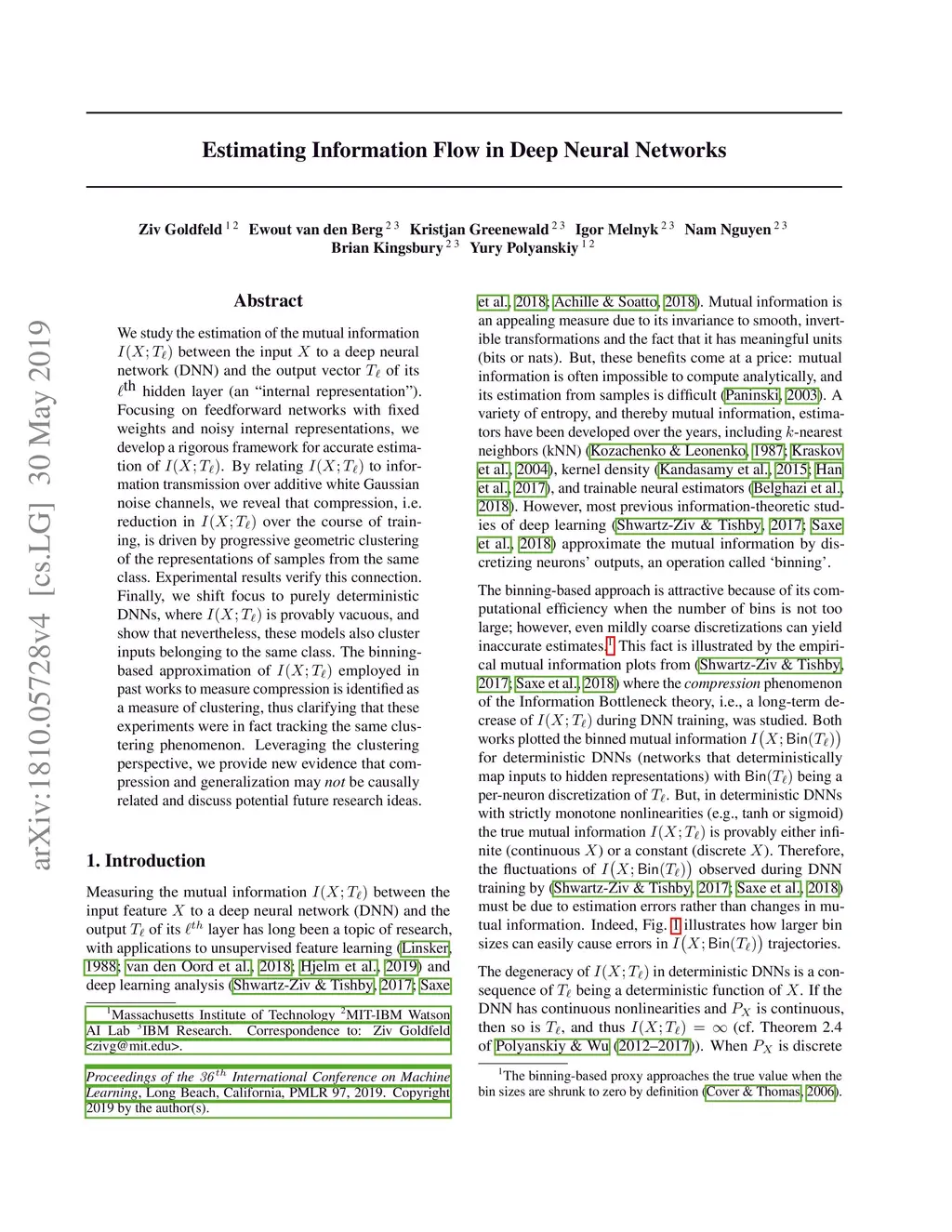 We study the flow of information and the evolution of internal representations during deep neural network (DNN) training, aiming to demystify the compression aspect of the information bottleneck theory. The theory suggests that DNN training comprises a rapid fitting phase followed by a slower compression phase, in which the mutual information between the input and internal representations decreases. Several papers observe compression of estimated mutual information on different DNN models, but the true over these networks is provably either constant (discrete ) or infinite (continuous ). This work explains the discrepancy between theory and experiments, and clarifies what was actually measured by these past works. To this end, we introduce an auxiliary (noisy) DNN framework for which is a meaningful quantity that depends on the network's parameters. This noisy framework is shown to be a good proxy for the original (deterministic) DNN both in terms of performance and the learned representations. We then develop a rigorous estimator for in noisy DNNs and observe compression in various models. By relating in the noisy DNN to an information-theoretic communication problem, we show that compression is driven by the progressive clustering of hidden representations of inputs from the same class. Several methods to directly monitor clustering of hidden representations, both in noisy and deterministic DNNs, are used to show that meaningful clusters form in the space. Finally, we return to the estimator of employed in past works, and demonstrate that while it fails to capture the true (vacuous) mutual information, it does serve as a measure for clustering. This clarifies the past observations of compression and isolates the geometric clustering of hidden representations as the true phenomenon of interest.