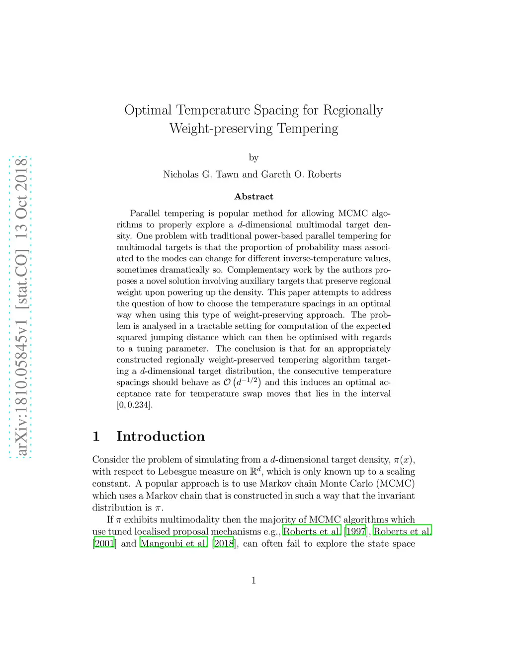 Parallel tempering is popular method for allowing MCMC algorithms to properly explore a -dimensional multimodal target density. One problem with traditional power-based parallel tempering for multimodal targets is that the proportion of probability mass associated to the modes can change for different inverse-temperature values, sometimes dramatically so. Complementary work by the authors proposes a novel solution involving auxiliary targets that preserve regional weight upon powering up the density. This paper attempts to address the question of how to choose the temperature spacings in an optimal way when using this type of weight-preserving approach.The problem is analysed in a tractable setting for computation of the expected squared jumping distance which can then be optimised with regards to a tuning parameter. The conclusion is that for an appropriately constructed regionally weight-preserved tempering algorithm targeting a -dimensional target distribution, the consecutive temperature spacings should behave as and this induces an optimal acceptance rate for temperature swap moves that lies in the interval .