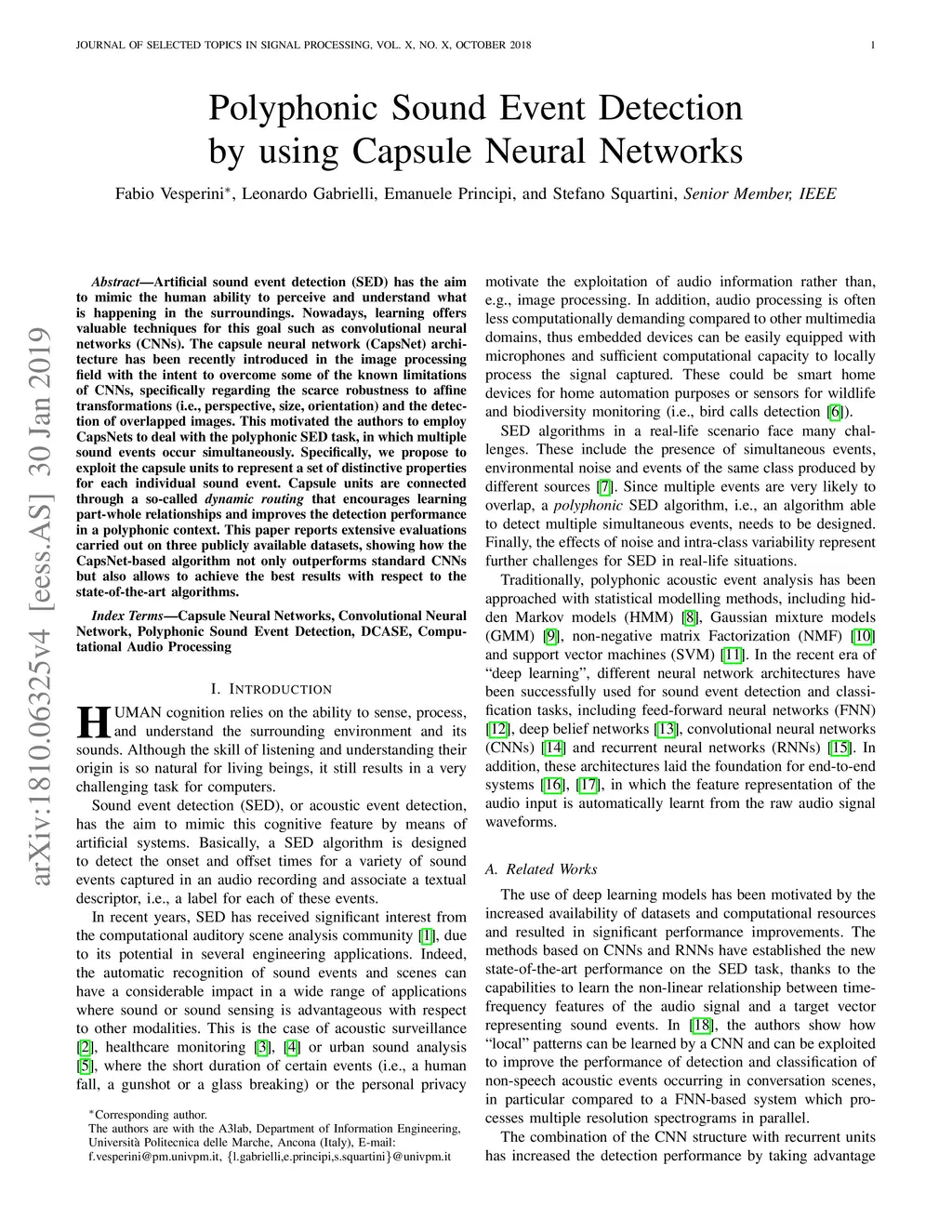 Polyphonic Sound Event Detection by using Capsule Neural Networks