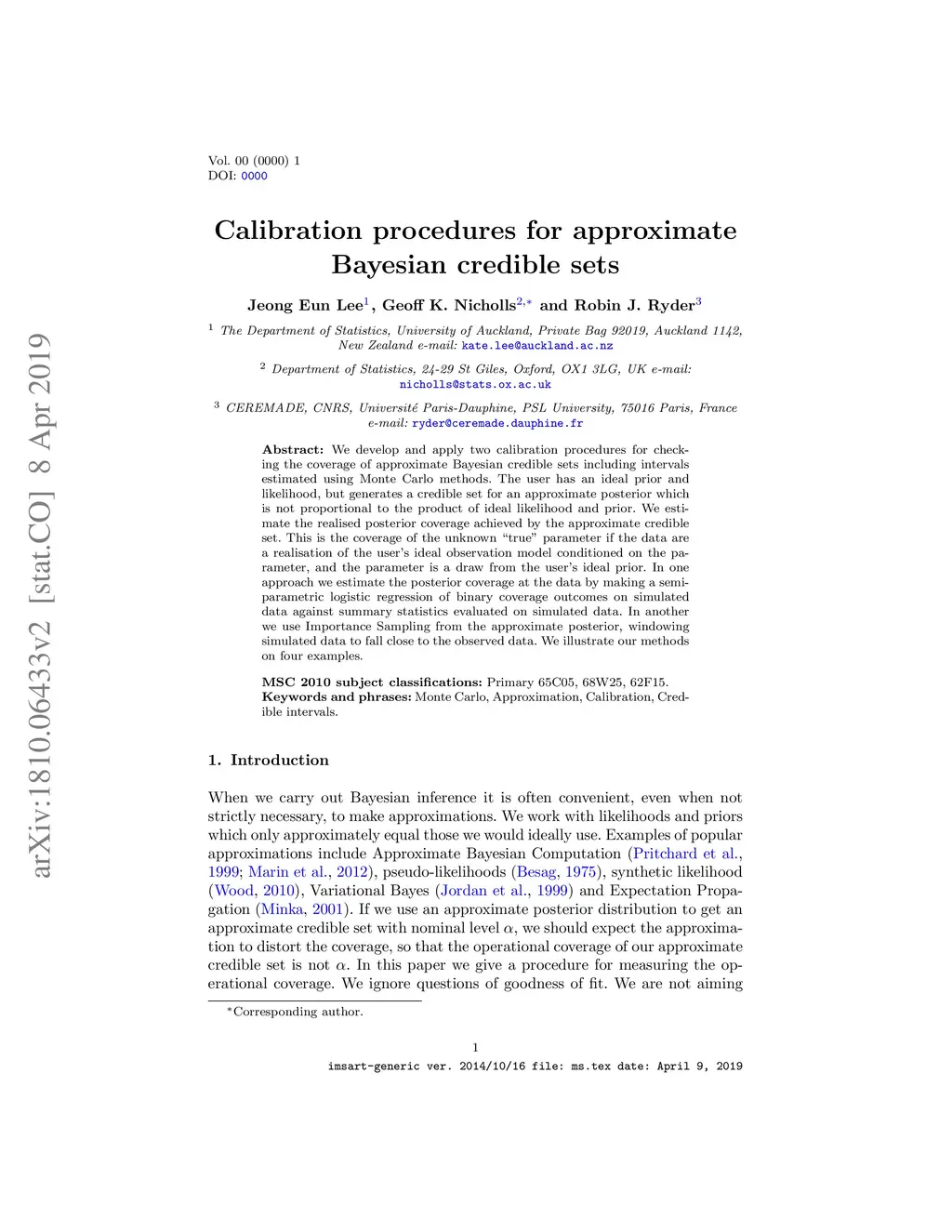 We develop and apply two calibration procedures for checking the coverage of approximate Bayesian credible sets including intervals estimated using Monte Carlo methods. The user has an ideal prior and likelihood, but generates a credible set for an approximate posterior which is not proportional to the product of ideal likelihood and prior. We estimate the realised posterior coverage achieved by the approximate credible set. This is the coverage of the unknown ``true'' parameter if the data are a realisation of the user's ideal observation model conditioned on the parameter, and the parameter is a draw from the user's ideal prior. In one approach we estimate the posterior coverage at the data by making a semi-parametric logistic regression of binary coverage outcomes on simulated data against summary statistics evaluated on simulated data. In another we use Importance Sampling from the approximate posterior, windowing simulated data to fall close to the observed data. We illustrate our methods on four examples.