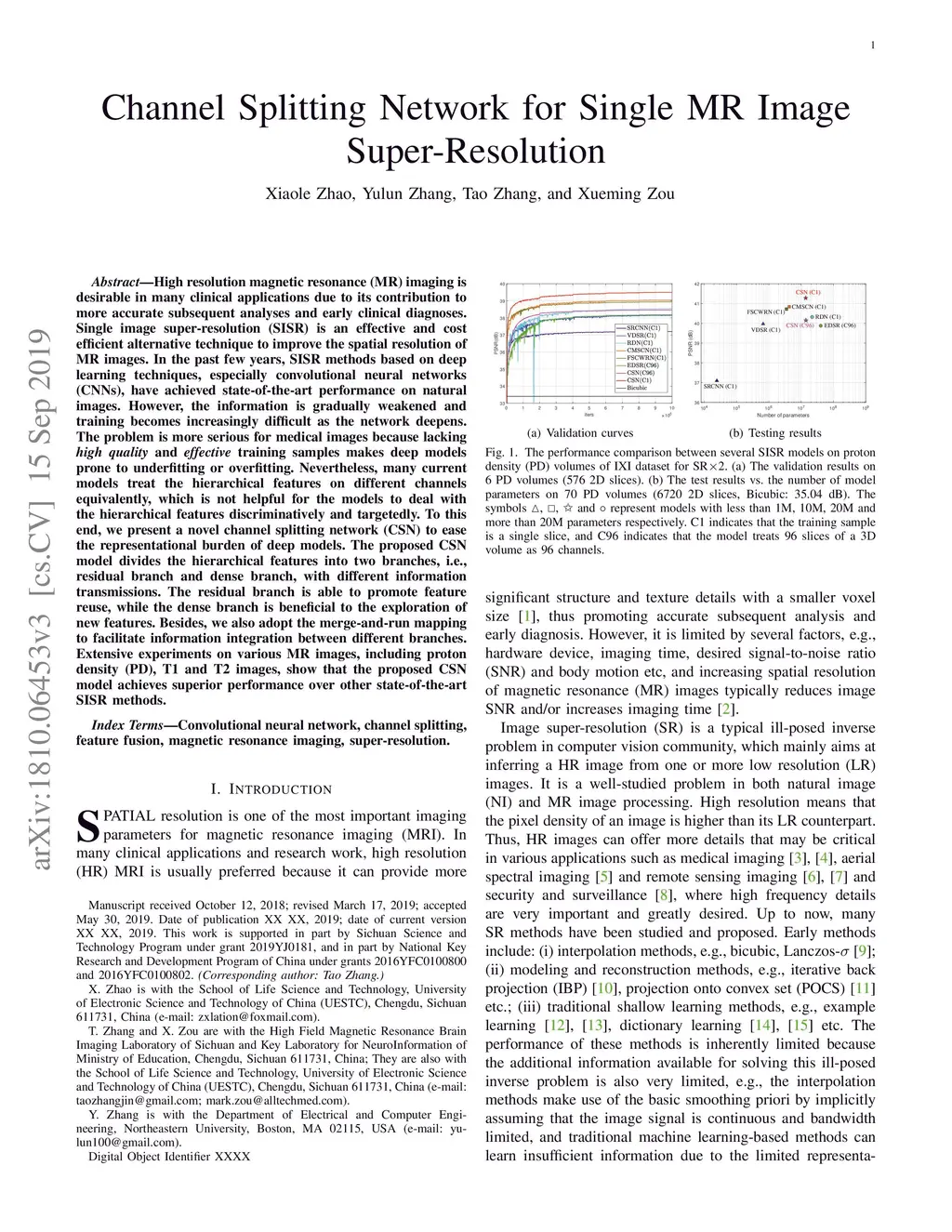 Channel Splitting Network for Single MR Image Super-Resolution