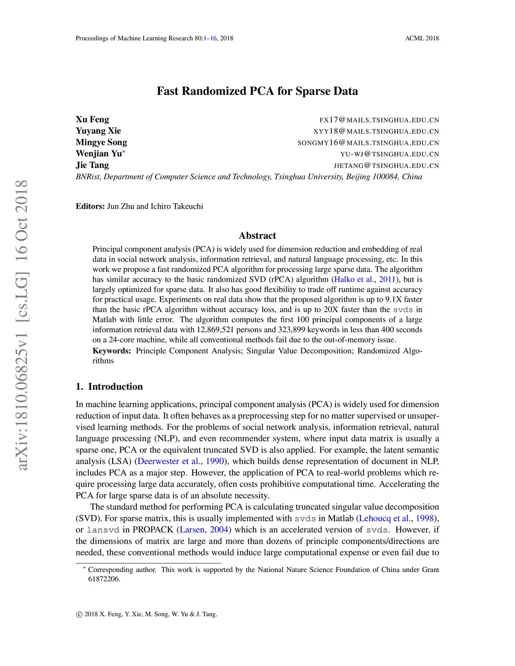 Fast Randomized PCA for Sparse Data