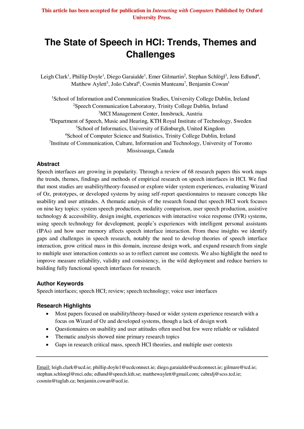 The State of Speech in HCI: Trends, Themes and Challenges