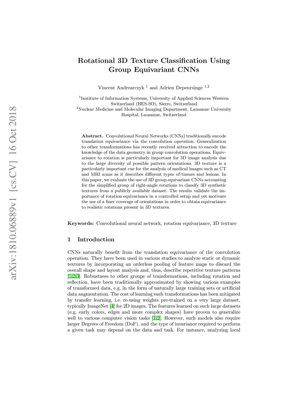 Rotational 3D Texture Classification Using Group Equivariant CNNs