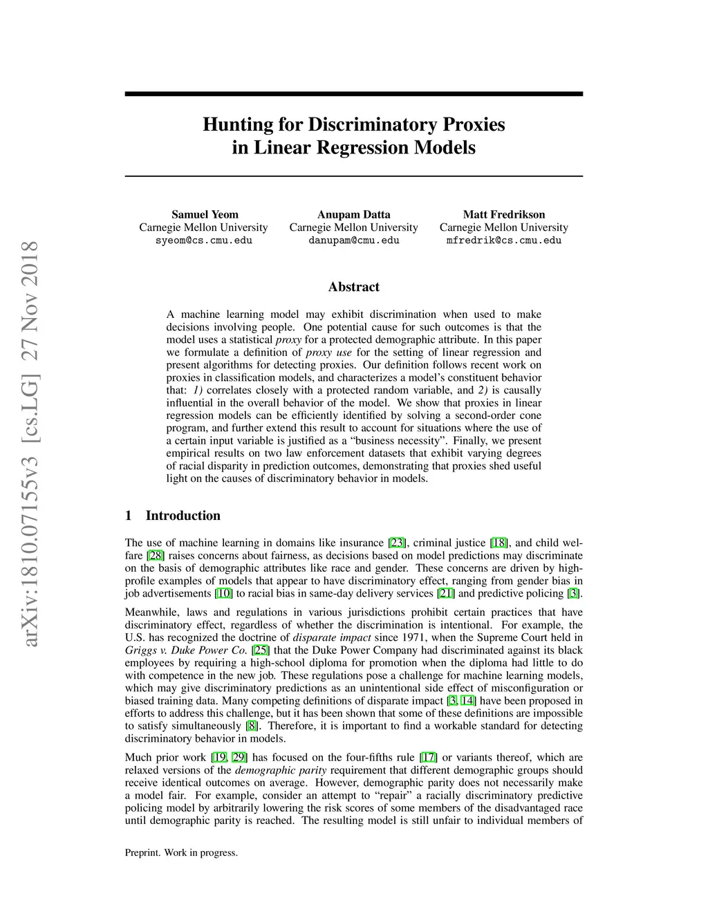 Hunting for Discriminatory Proxies in Linear Regression Models