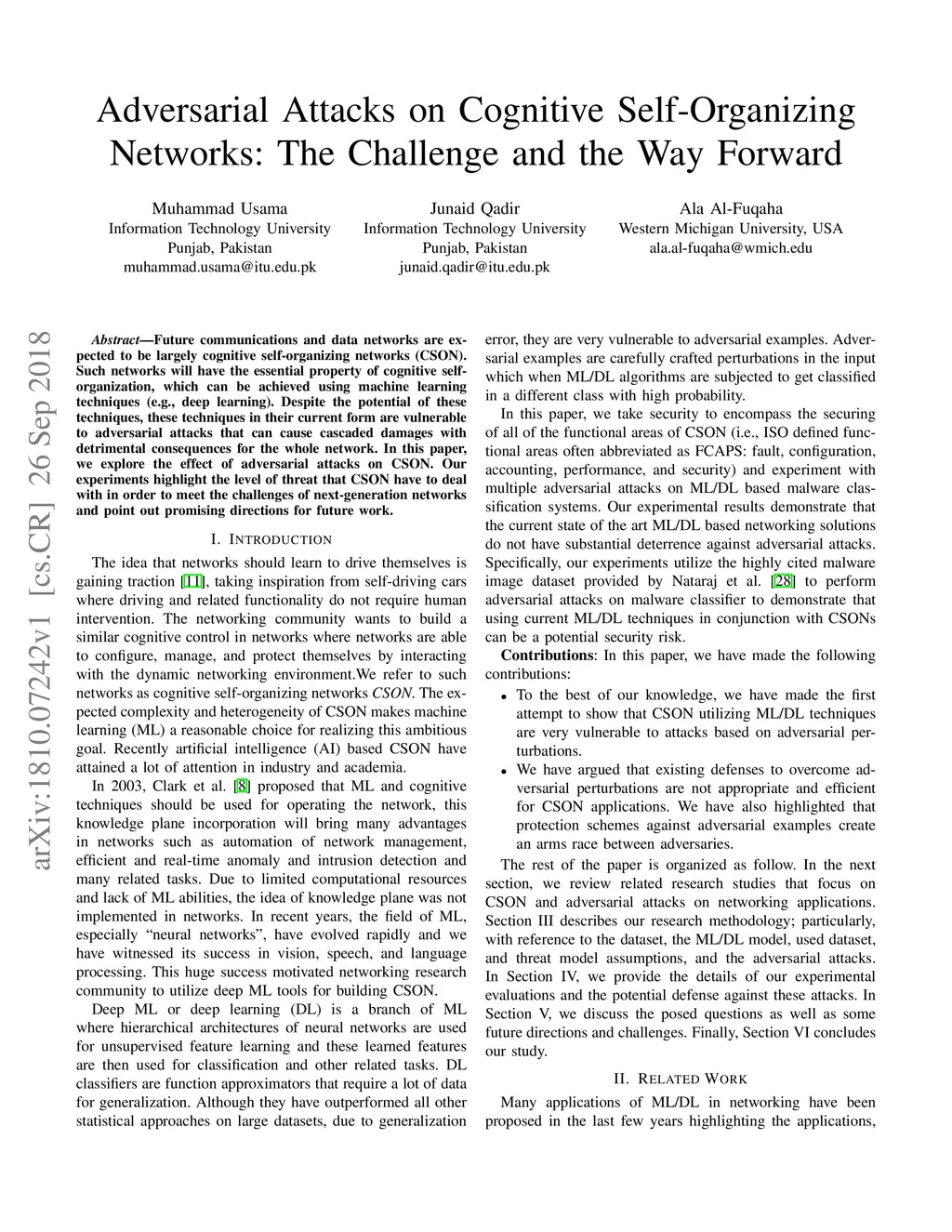 Adversarial Attacks on Cognitive Self-Organizing Networks: The Challenge