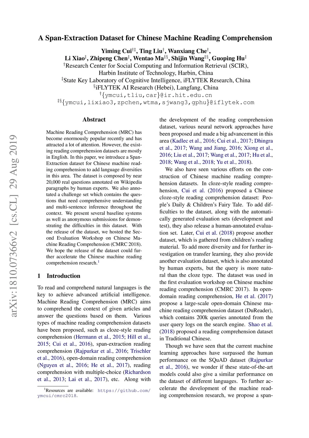 A Span-Extraction Dataset for Chinese Machine Reading Comprehension