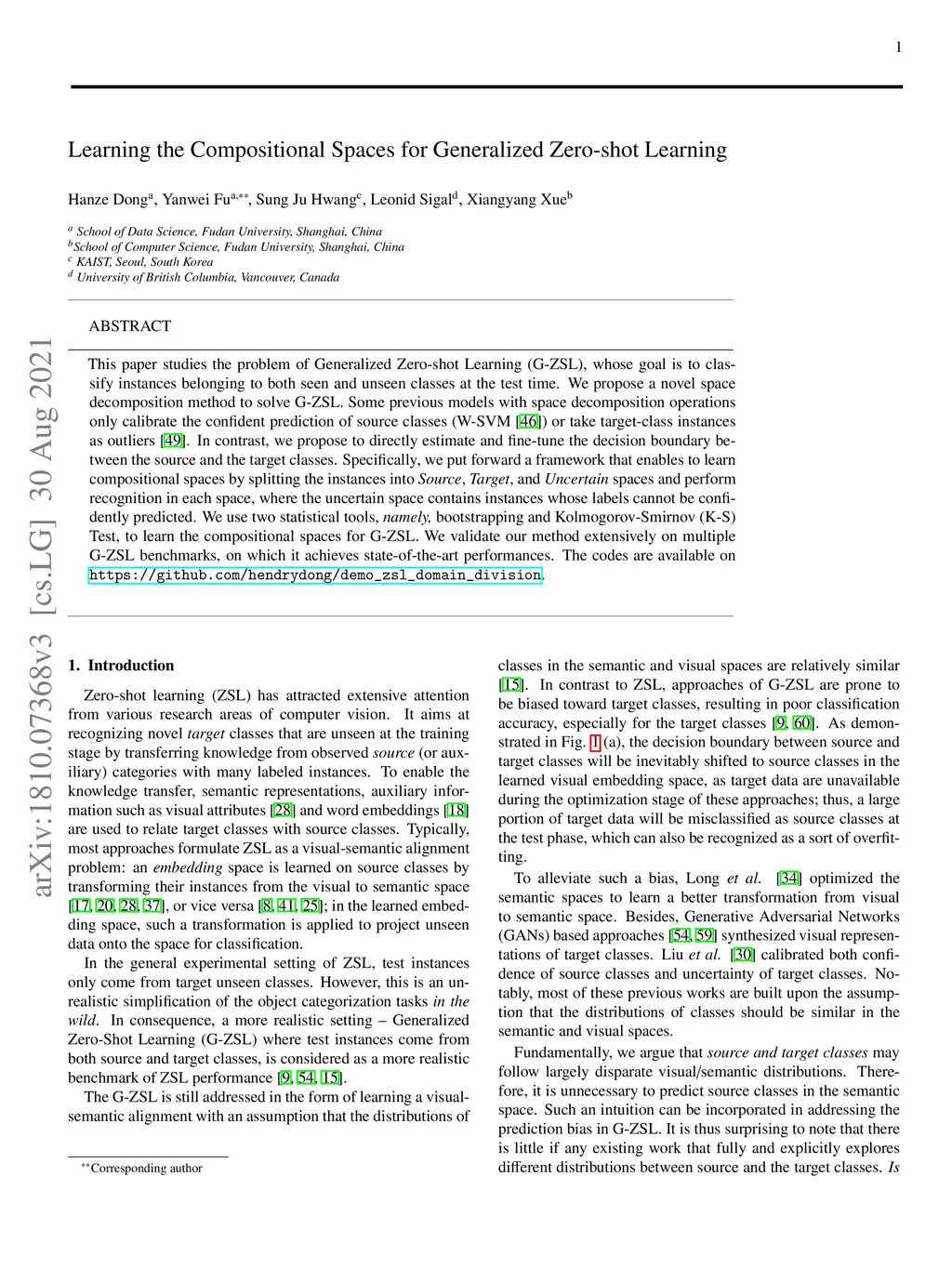 This paper studies the problem of Generalized Zero-shot Learning (G-ZSL), whose goal is to classify instances belonging to both seen and unseen classes at the test time. We propose a novel space decomposition method to solve G-ZSL. Some previous models with space decomposition operations only calibrate the confident prediction of source classes (W-SVM [46]) or take target-class instances as outliers [49]. In contrast, we propose to directly estimate and fine-tune the decision boundary between the source and the target classes. Specifically, we put forward a framework that enables to learn compositional spaces by splitting the instances into Source, Target, and Uncertain spaces and perform recognition in each space, where the uncertain space contains instances whose labels cannot be confidently predicted. We use two statistical tools, namely, bootstrapping and Kolmogorov-Smirnov (K-S) Test, to learn the compositional spaces for G-ZSL. We validate our method extensively on multiple G-ZSL benchmarks, on which it achieves state-of-the-art performances.