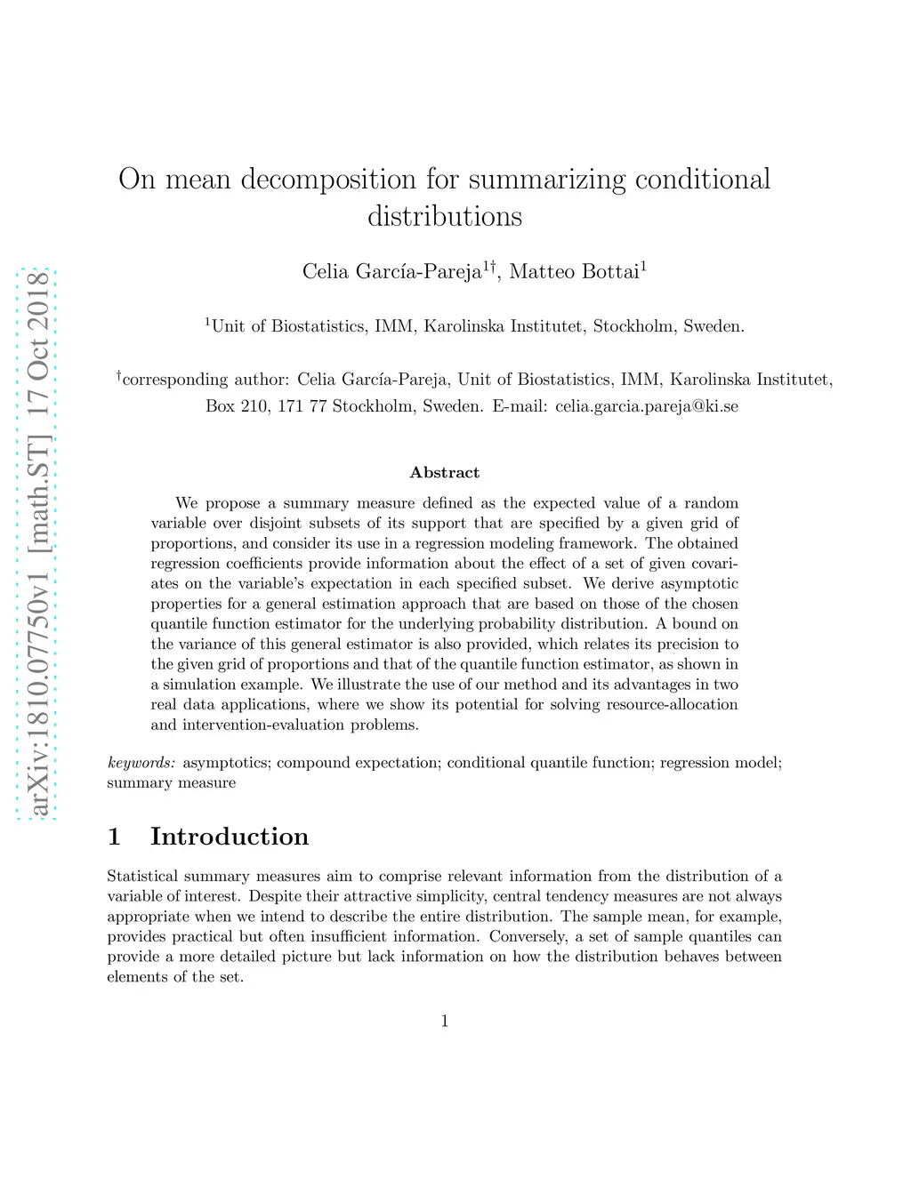 We propose a summary measure defined as the expected value of a random variable over disjoint subsets of its support that are specified by a given grid of proportions, and consider its use in a regression modeling framework. The obtained regression coefficients provide information about the effect of a set of given covariates on the variable's expectation in each specified subset. We derive asymptotic properties for a general estimation approach that are based on those of the chosen quantile function estimator for the underlying probability distribution. A bound on the variance of this general estimator is also provided, which relates its precision to the given grid of proportions and that of the quantile function estimator, as shown in a simulation example. We illustrate the use of our method and its advantages in two real data applications, where we show its potential for solving resource-allocation and intervention-evaluation problems.