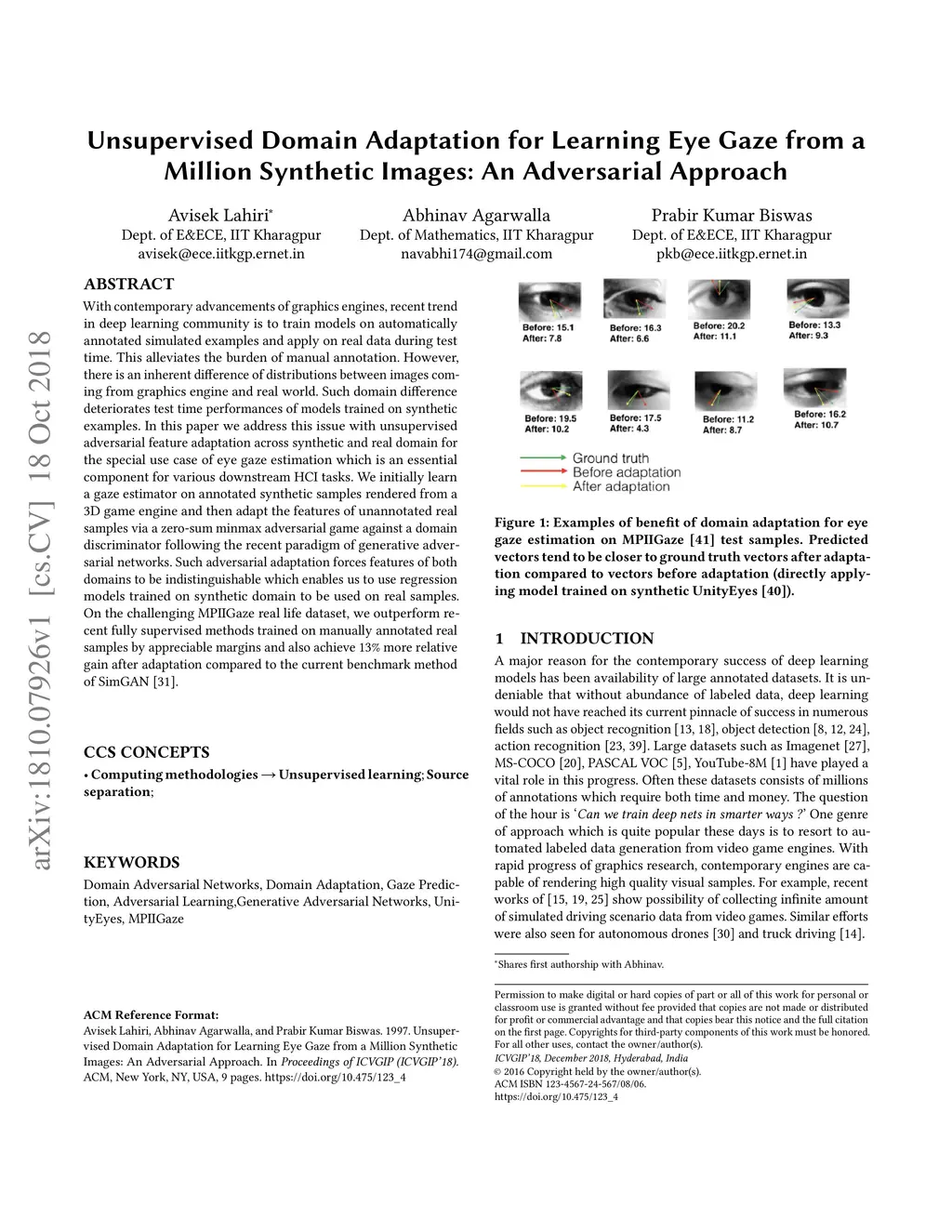 Unsupervised Domain Adaptation for Learning Eye Gaze from a Million