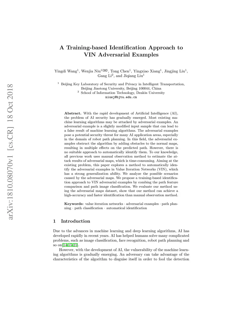 A Training-based Identification Approach to VIN Adversarial Examples