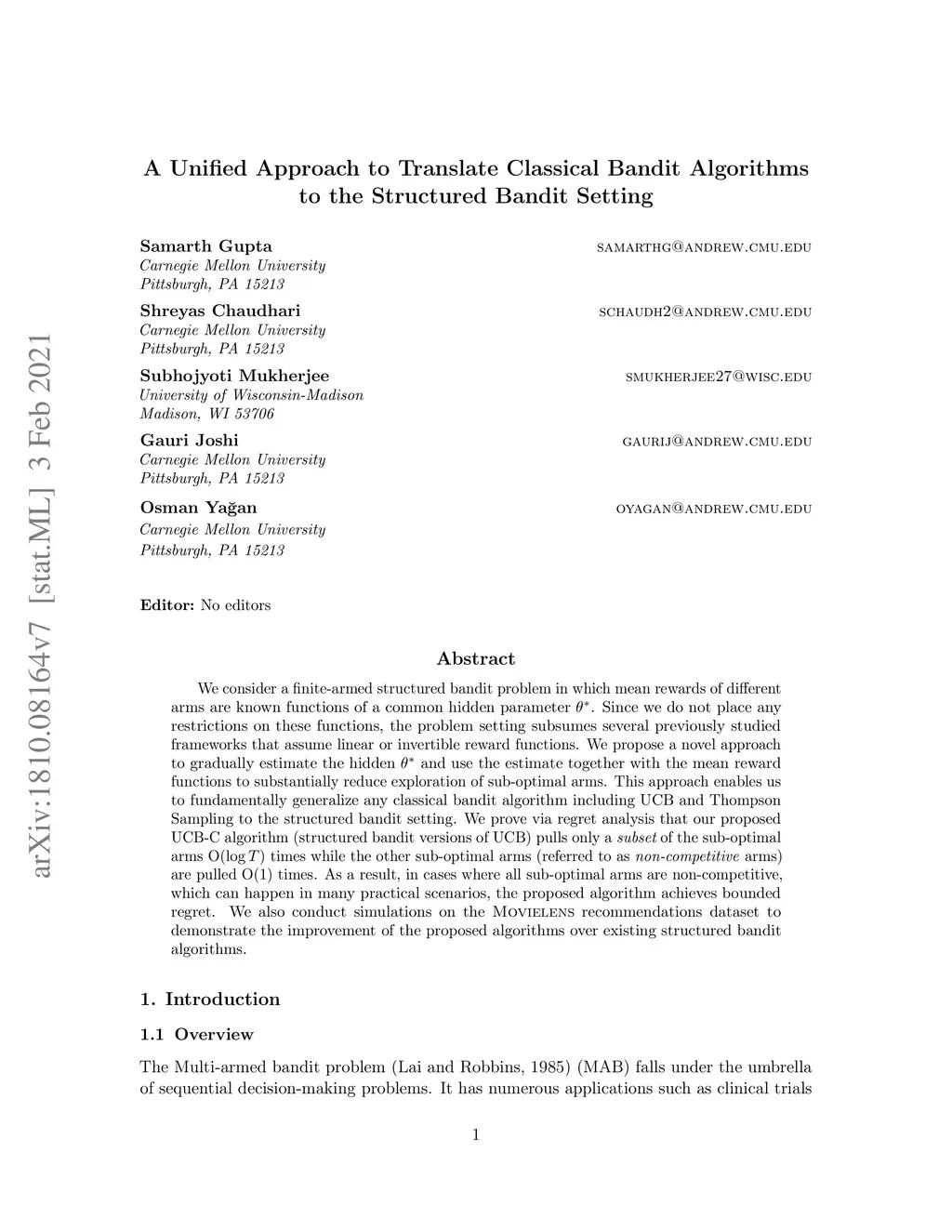 Structured Bandit Setting