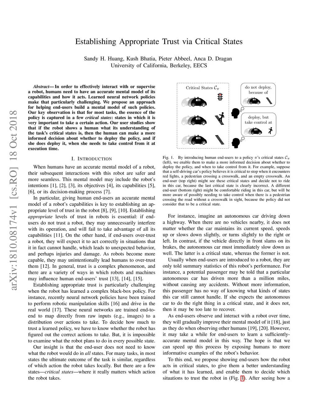 In order to effectively interact with or supervise a robot, humans need to have an accurate mental model of its capabilities and how it acts. Learned neural network policies make that particularly challenging. We propose an approach for helping end-users build a mental model of such policies. Our key observation is that for most tasks, the essence of the policy is captured in a few critical states: states in which it is very important to take a certain action. Our user studies show that if the robot shows a human what its understanding of the task's critical states is, then the human can make a more informed decision about whether to deploy the policy, and if she does deploy it, when she needs to take control from it at execution time.