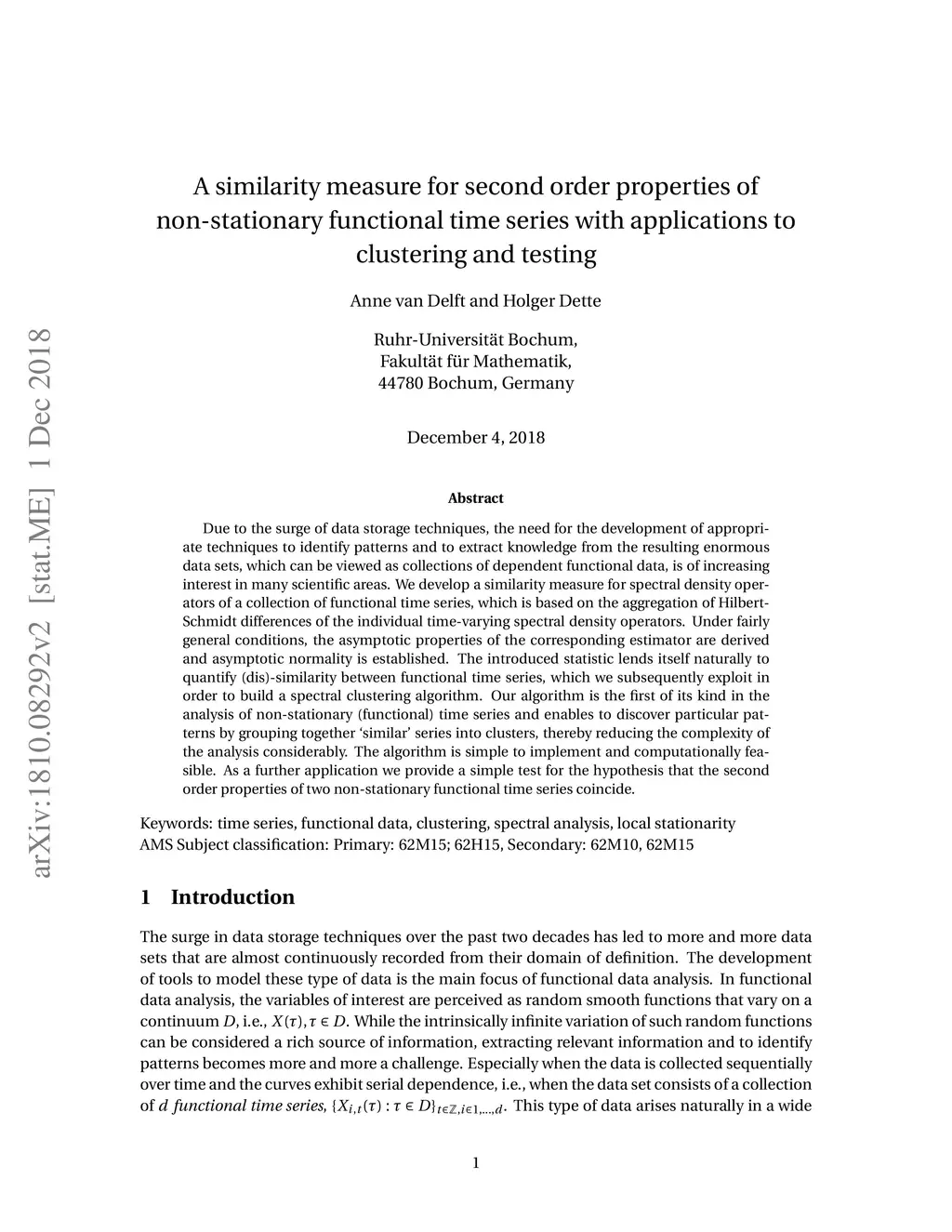 functional time series with applications to clustering and testing