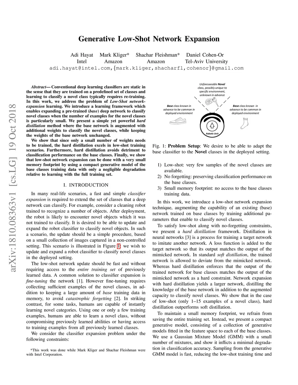 Conventional deep learning classifiers are static in the sense that they are trained on a predefined set of classes and learning to classify a novel class typically requires re-training. In this work, we address the problem of Low-Shot network expansion learning. We introduce a learning framework which enables expanding a pre-trained (base) deep network to classify novel classes when the number of examples for the novel classes is particularly small. We present a simple yet powerful hard distillation method where the base network is augmented with additional weights to classify the novel classes, while keeping the weights of the base network unchanged. We show that since only a small number of weights needs to be trained, the hard distillation excels in low-shot training scenarios. Furthermore, hard distillation avoids detriment to classification performance on the base classes. Finally, we show that low-shot network expansion can be done with a very small memory footprint by using a compact generative model of the base classes training data with only a negligible degradation relative to learning with the full training set.