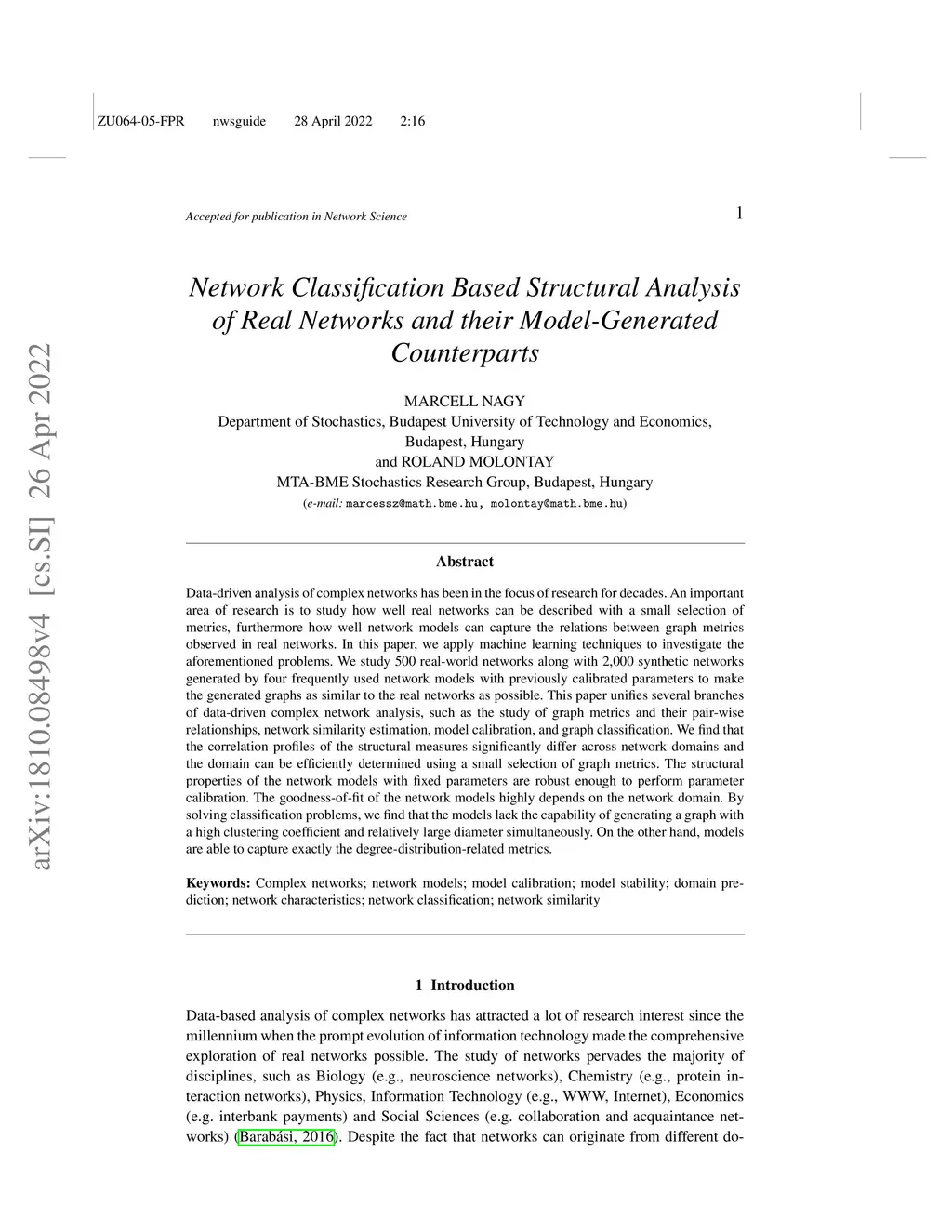 Data-driven analysis of complex networks has been in the focus of research for decades. An important area of research is to study how well real networks can be described with a small selection of metrics, furthermore how well network models can capture the relations between graph metrics observed in real networks. In this paper, we apply machine learning techniques to investigate the aforementioned problems. We study 500 real-world networks along with 2,000 synthetic networks generated by four frequently used network models with previously calibrated parameters to make the generated graphs as similar to the real networks as possible. This paper unifies several branches of data-driven complex network analysis, such as the study of graph metrics and their pair-wise relationships, network similarity estimation, model calibration, and graph classification. We find that the correlation profiles of the structural measures significantly differ across network domains and the domain can be efficiently determined using a small selection of graph metrics. The structural properties of the network models with fixed parameters are robust enough to perform parameter calibration. The goodness-of-fit of the network models highly depends on the network domain. By solving classification problems, we find that the models lack the capability of generating a graph with a high clustering coefficient and relatively large diameter simultaneously. On the other hand, models are able to capture exactly the degree-distribution-related metrics.