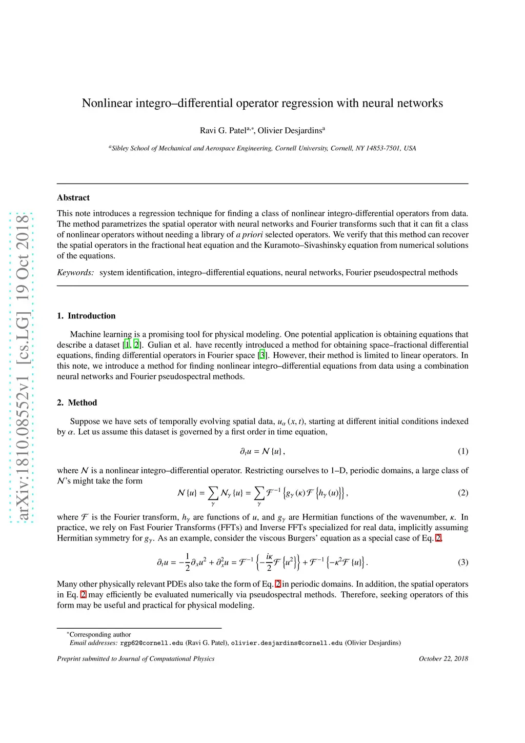 This note introduces a regression technique for finding a class of nonlinear integro-differential operators from data. The method parametrizes the spatial operator with neural networks and Fourier transforms such that it can fit a class of nonlinear operators without needing a library of a priori selected operators. We verify that this method can recover the spatial operators in the fractional heat equation and the Kuramoto-Sivashinsky equation from numerical solutions of the equations.