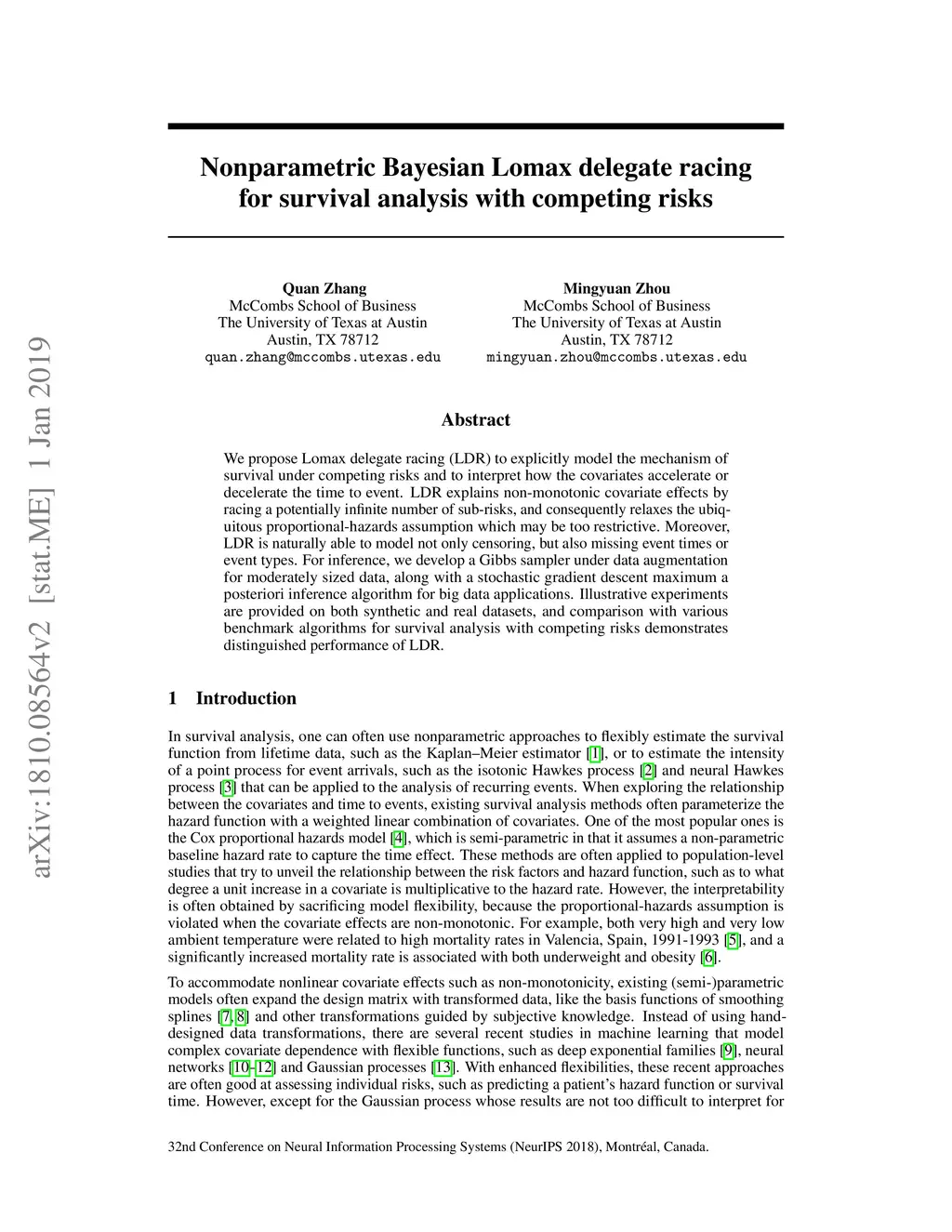Nonparametric Bayesian Lomax delegate racing for survival analysis with