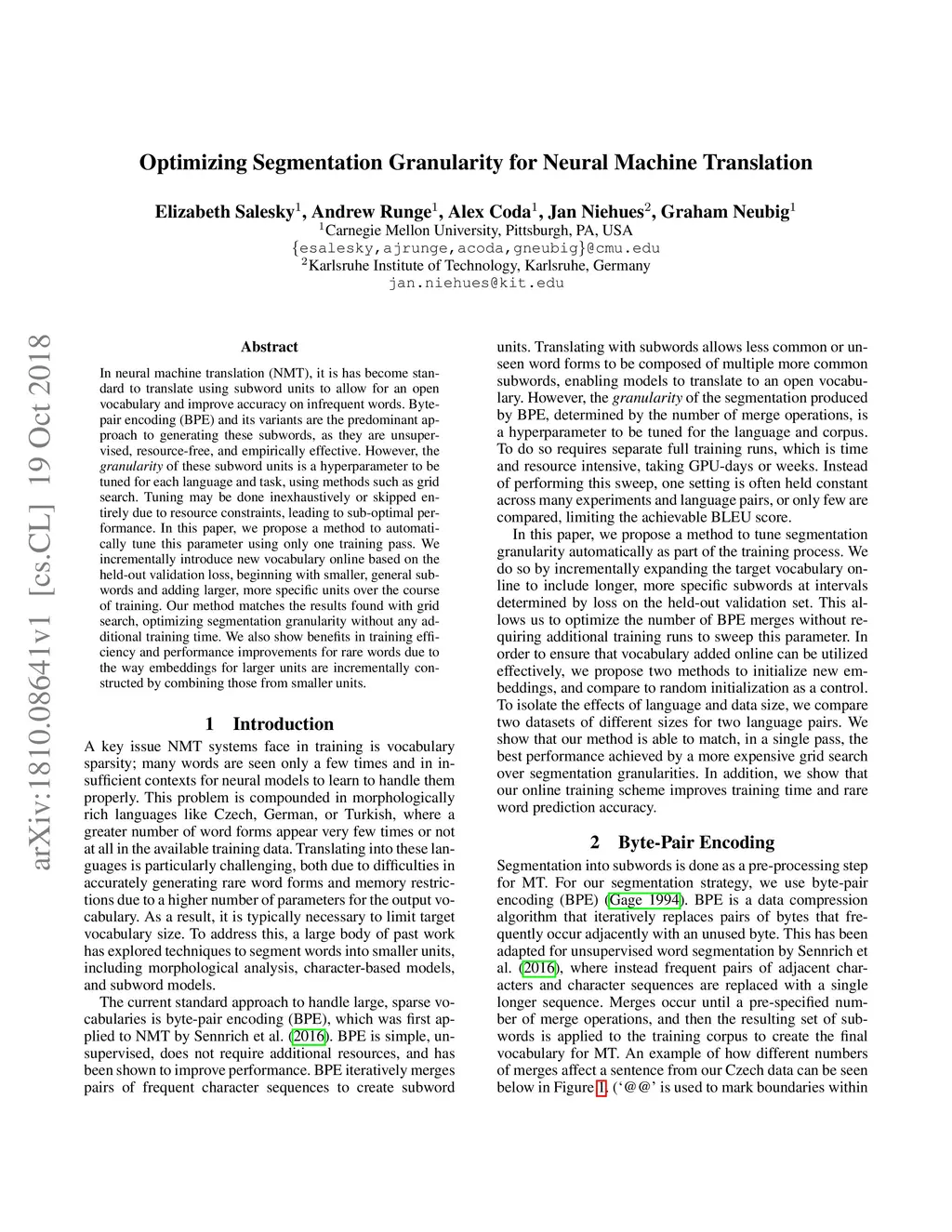 Optimizing Segmentation Granularity for Neural Machine Translation