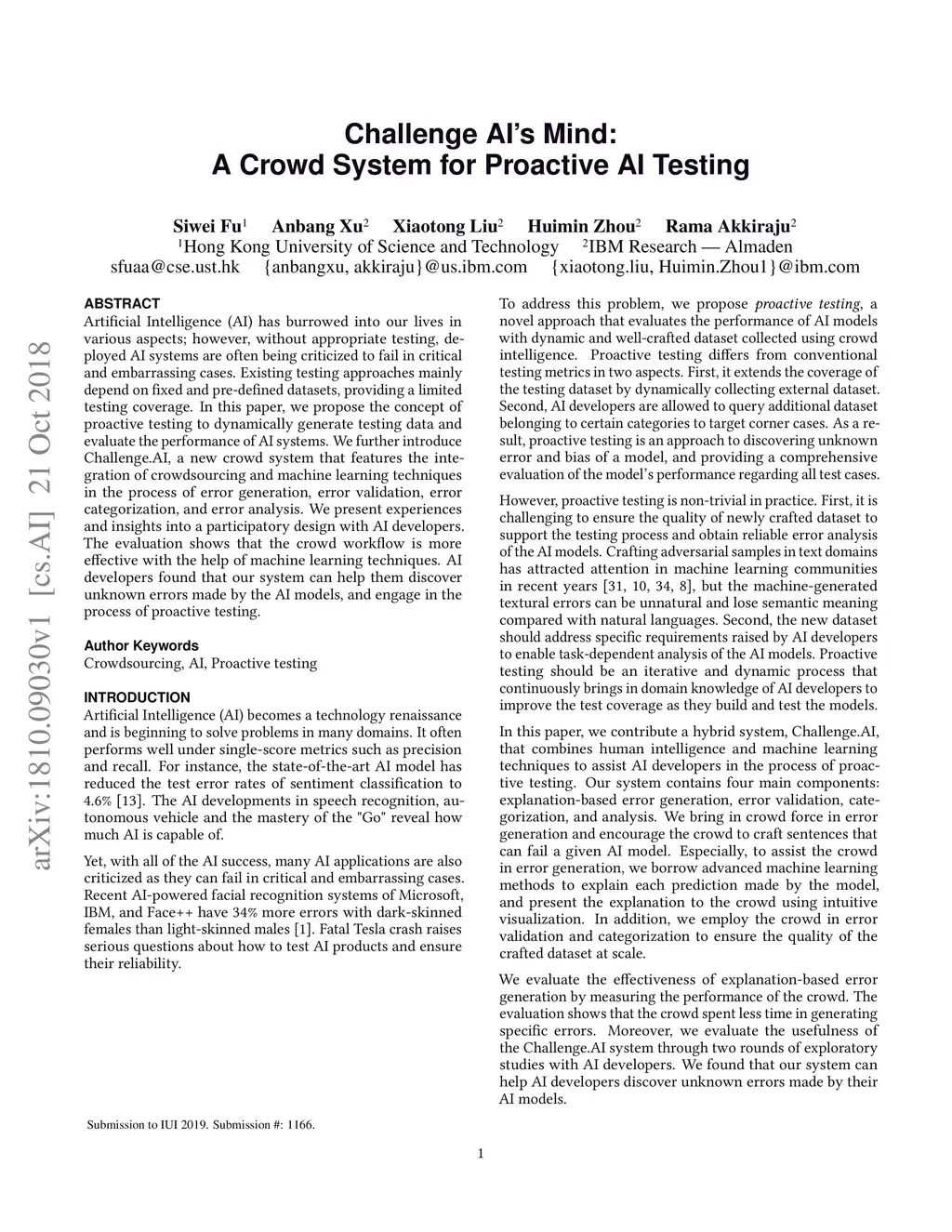 Challenge AI Mind: A Crowd System for Proactive AI Testing