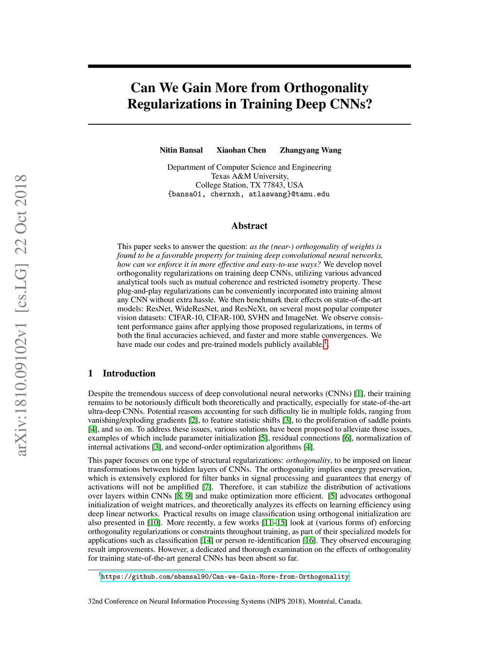 This paper seeks to answer the question: as the (near-) orthogonality of weights is found to be a favorable property for training deep convolutional neural networks, how can we enforce it in more effective and easy-to-use ways? We develop novel orthogonality regularizations on training deep CNNs, utilizing various advanced analytical tools such as mutual coherence and restricted isometry property. These plug-and-play regularizations can be conveniently incorporated into training almost any CNN without extra hassle. We then benchmark their effects on state-of-the-art models: ResNet, WideResNet, and ResNeXt, on several most popular computer vision datasets: CIFAR-10, CIFAR-100, SVHN and ImageNet. We observe consistent performance gains after applying those proposed regularizations, in terms of both the final accuracies achieved, and faster and more stable convergences. We have made our codes and pre-trained models publicly available: https://github.com/nbansal90/Can-we-Gain-More-from-Orthogonality.