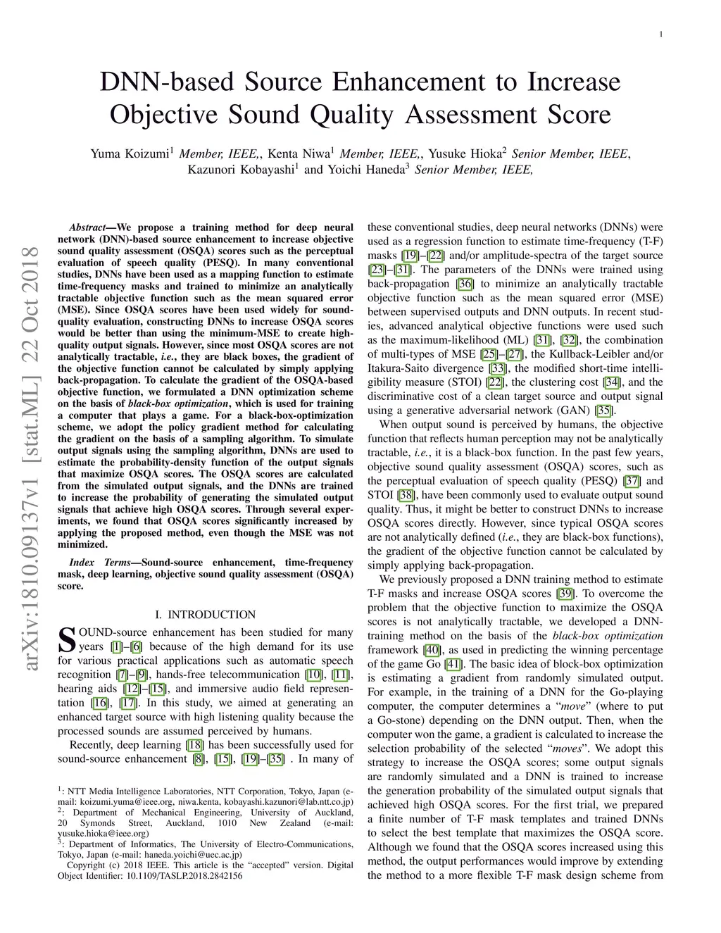 DNN-based Source Enhancement to Increase Objective Sound Quality
