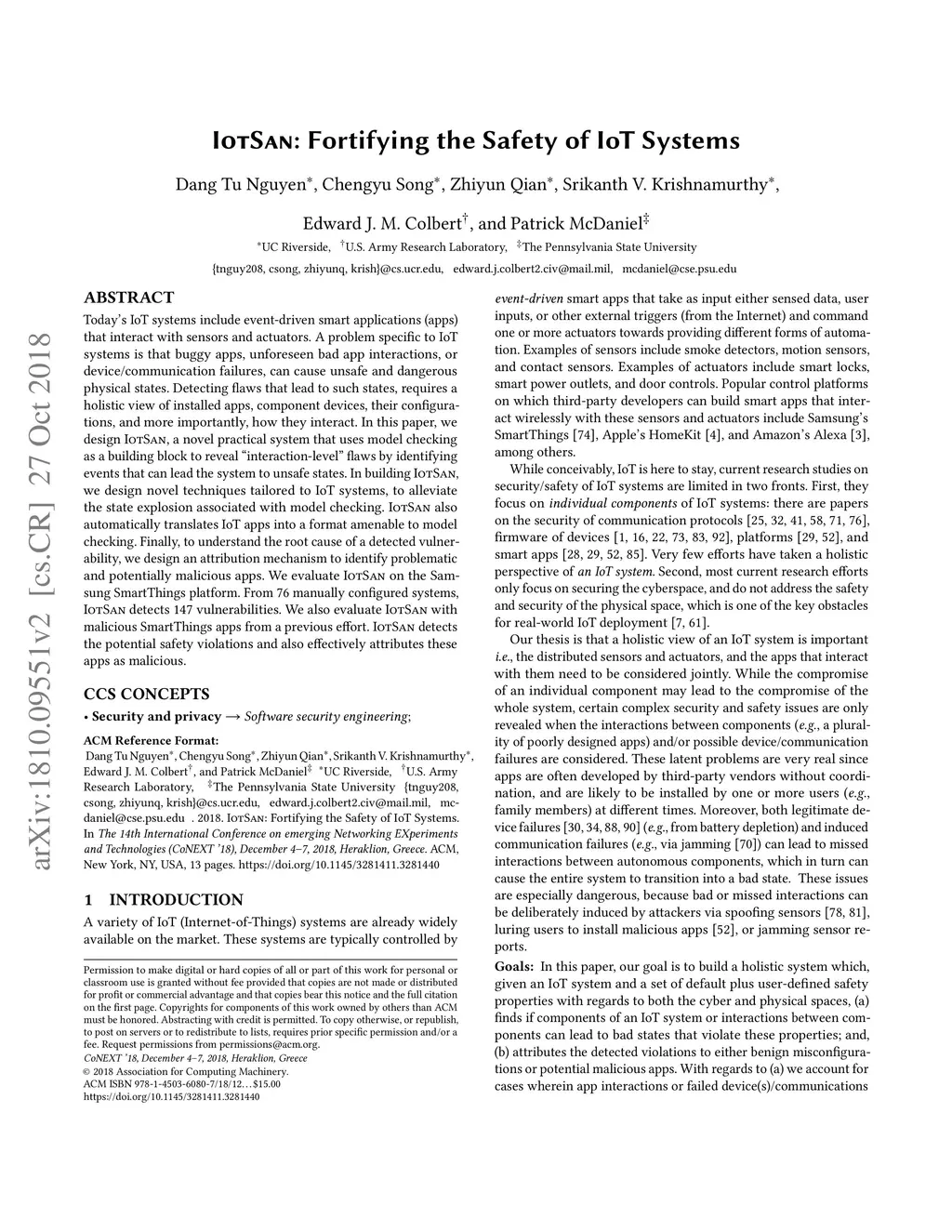 IoTSan: Fortifying the Safety of IoT Systems