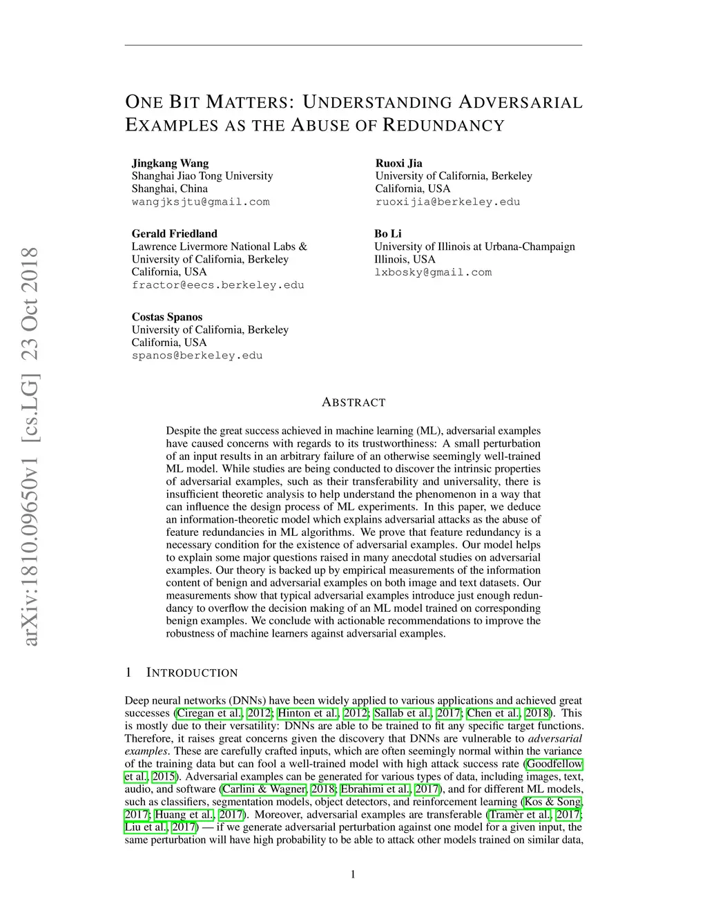 One Bit Matters: Understanding Adversarial Examples as the Abuse of