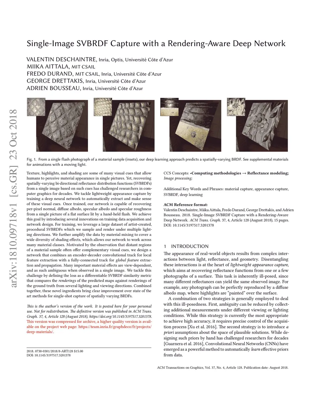 Single-Image SVBRDF Capture with a Rendering-Aware Deep Network