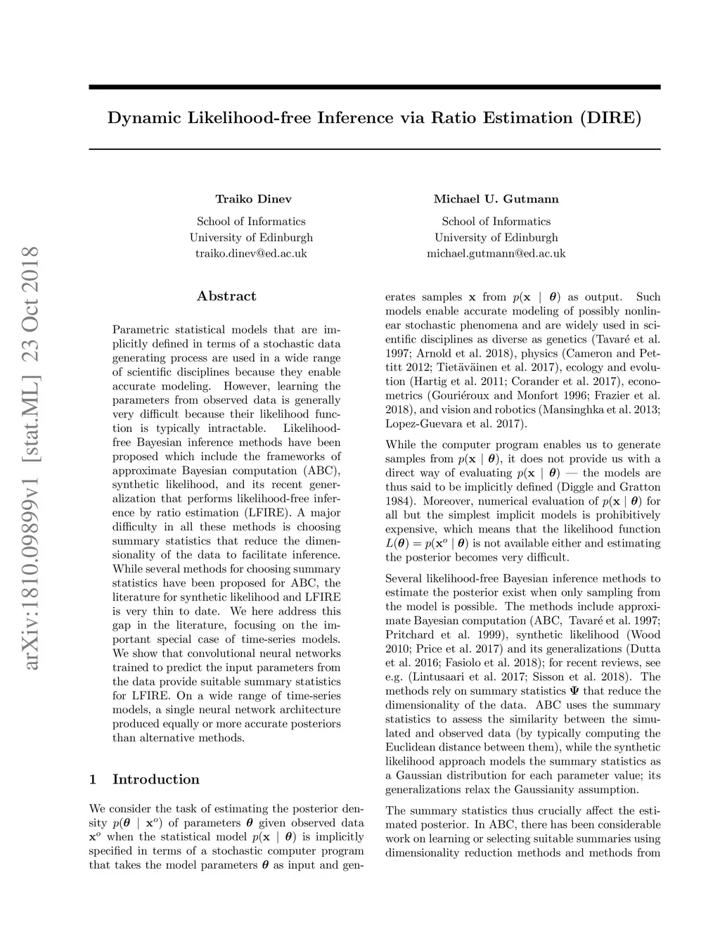Dynamic Likelihood-free Inference via Ratio Estimation (DIRE)