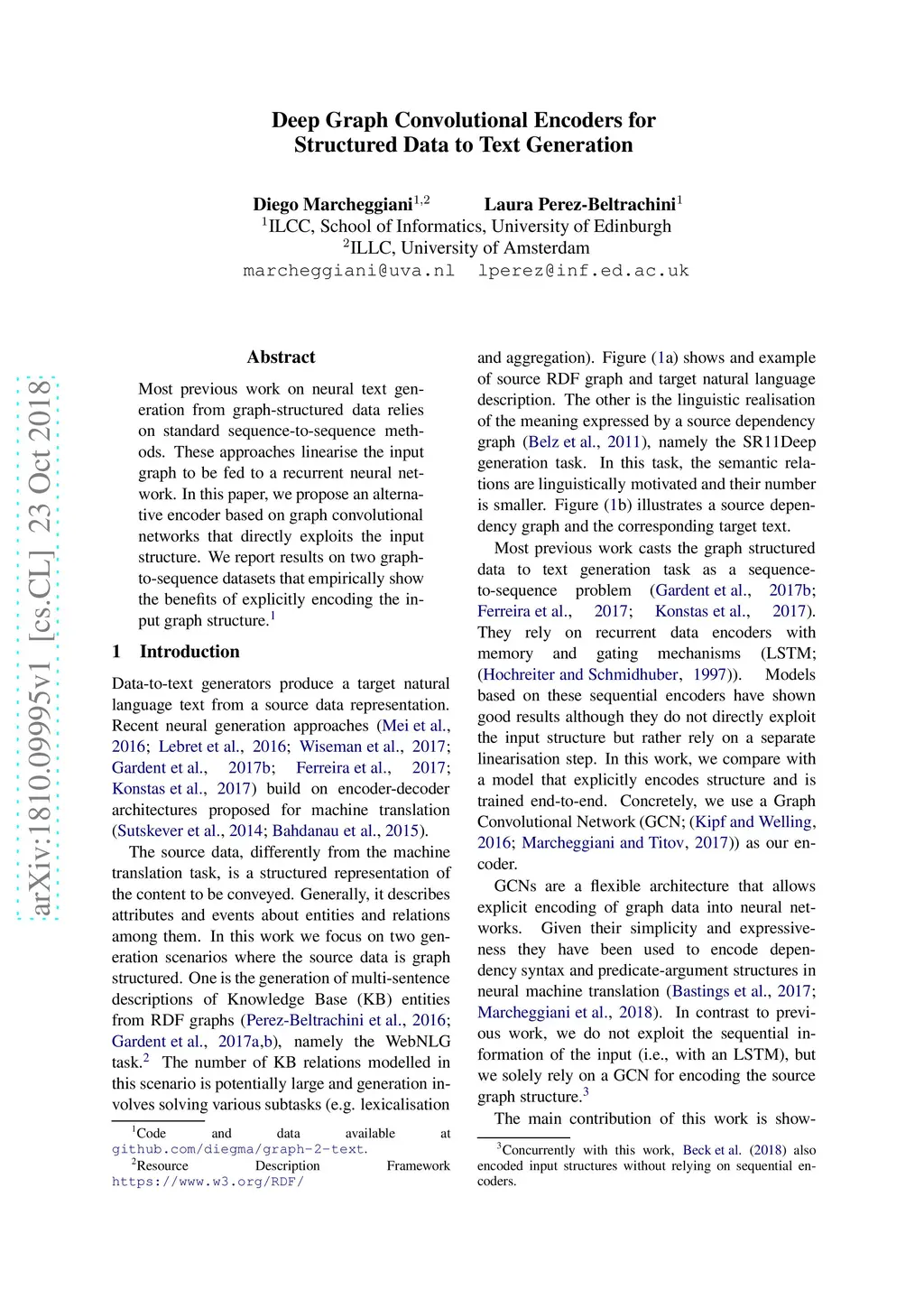 Deep Graph Convolutional Encoders for Structured Data to Text Generation