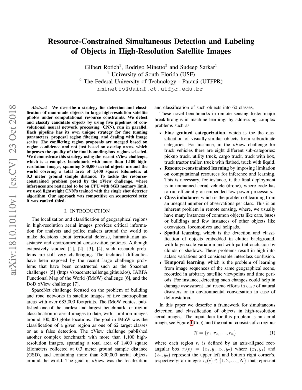 We describe a strategy for detection and classification of man-made objects in large high-resolution satellite photos under computational resource constraints. We detect and classify candidate objects by using five pipelines of convolutional neural network processing (CNN), run in parallel. Each pipeline has its own unique strategy for fine tunning parameters, proposal region filtering, and dealing with image scales. The conflicting region proposals are merged based on region confidence and not just based on overlap areas, which improves the quality of the final bounding-box regions selected. We demonstrate this strategy using the recent xView challenge, which is a complex benchmark with more than 1,100 high-resolution images, spanning 800,000 aerial objects around the world covering a total area of 1,400 square kilometers at 0.3 meter ground sample distance. To tackle the resource-constrained problem posed by the xView challenge, where inferences are restricted to be on CPU with 8GB memory limit, we used lightweight CNN's trained with the single shot detector algorithm. Our approach was competitive on sequestered sets; it was ranked third.