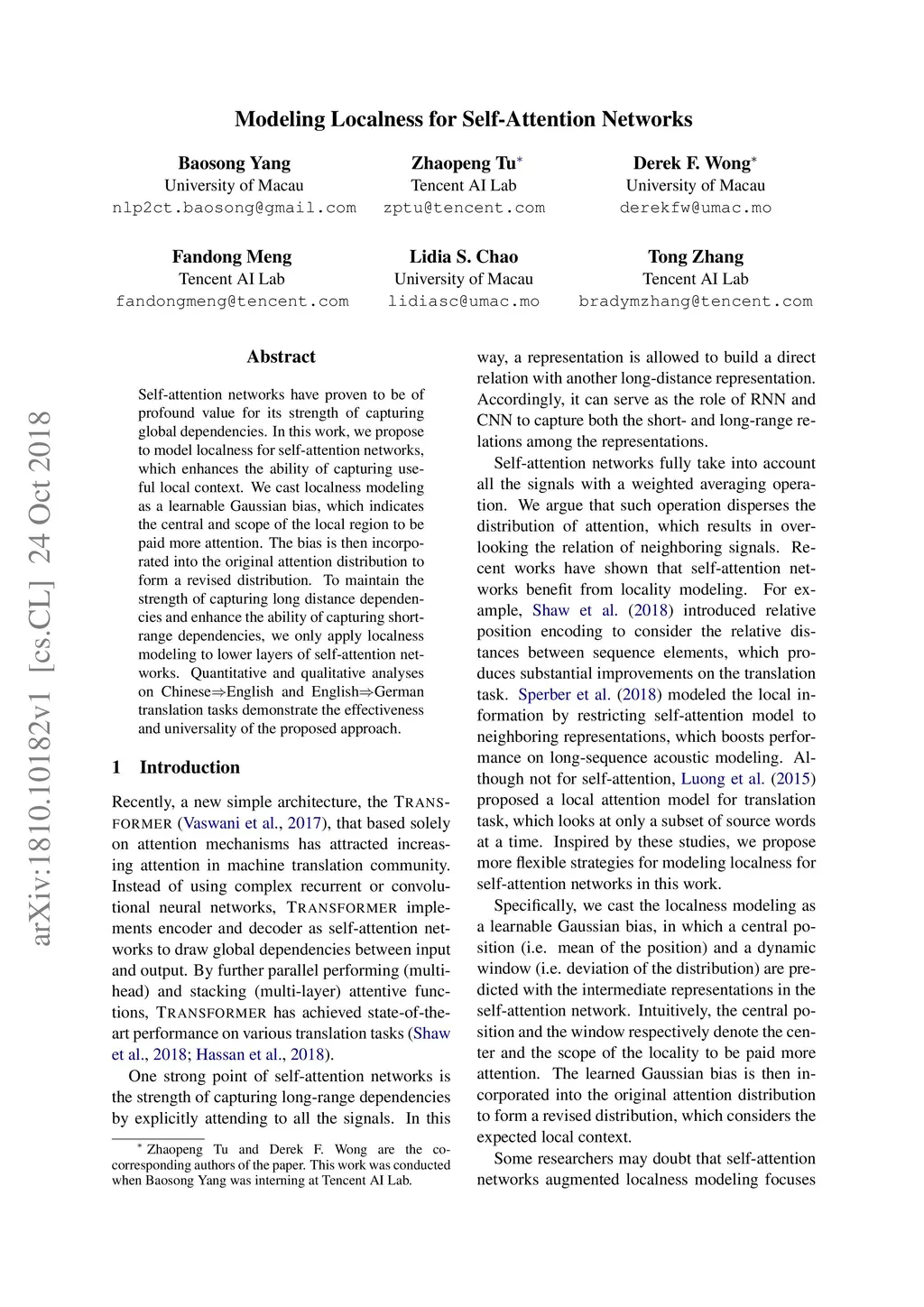 Self-attention networks have proven to be of profound value for its strength of capturing global dependencies. In this work, we propose to model localness for self-attention networks, which enhances the ability of capturing useful local context. We cast localness modeling as a learnable Gaussian bias, which indicates the central and scope of the local region to be paid more attention. The bias is then incorporated into the original attention distribution to form a revised distribution. To maintain the strength of capturing long distance dependencies and enhance the ability of capturing short-range dependencies, we only apply localness modeling to lower layers of self-attention networks. Quantitative and qualitative analyses on Chinese-English and English-German translation tasks demonstrate the effectiveness and universality of the proposed approach.