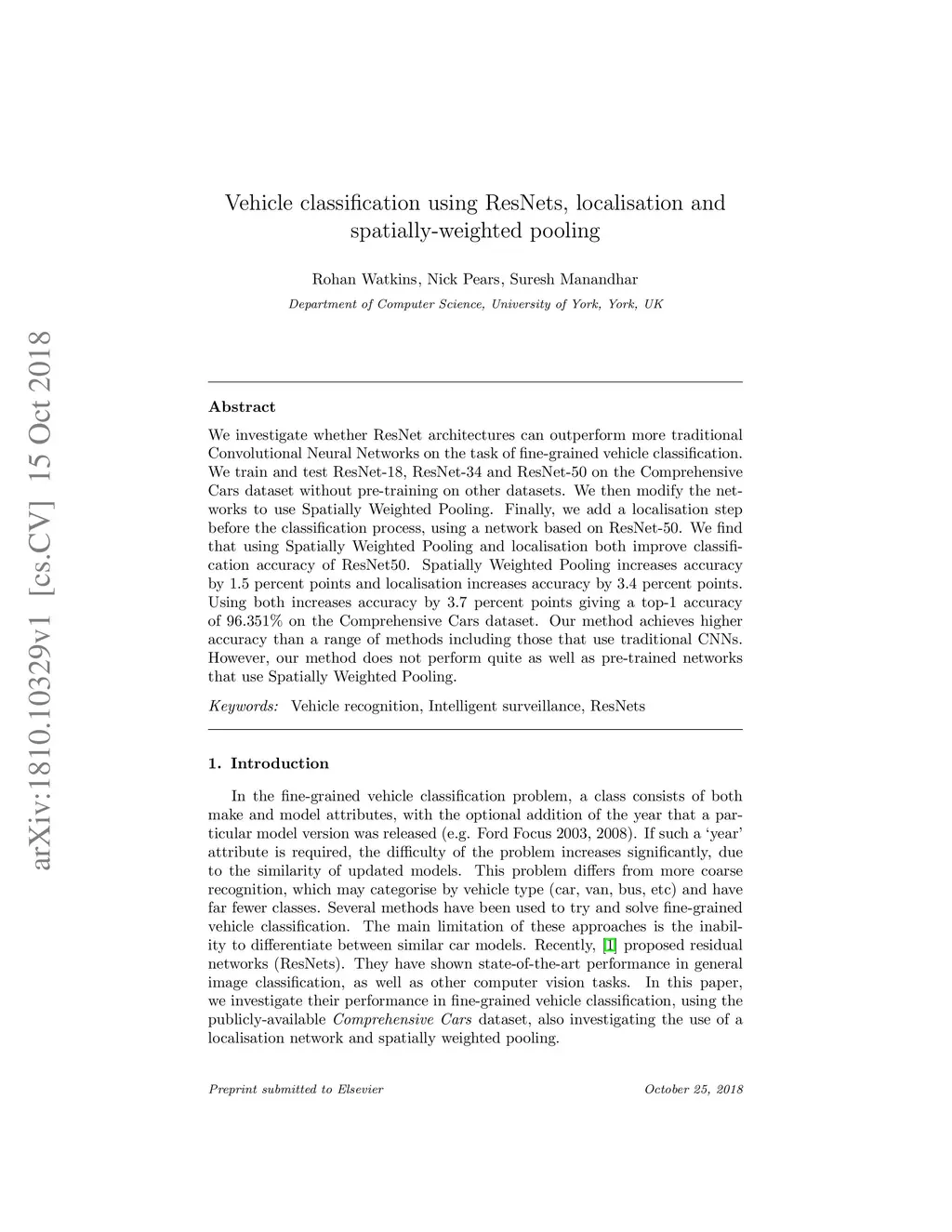Vehicle classification using ResNets, localisation and