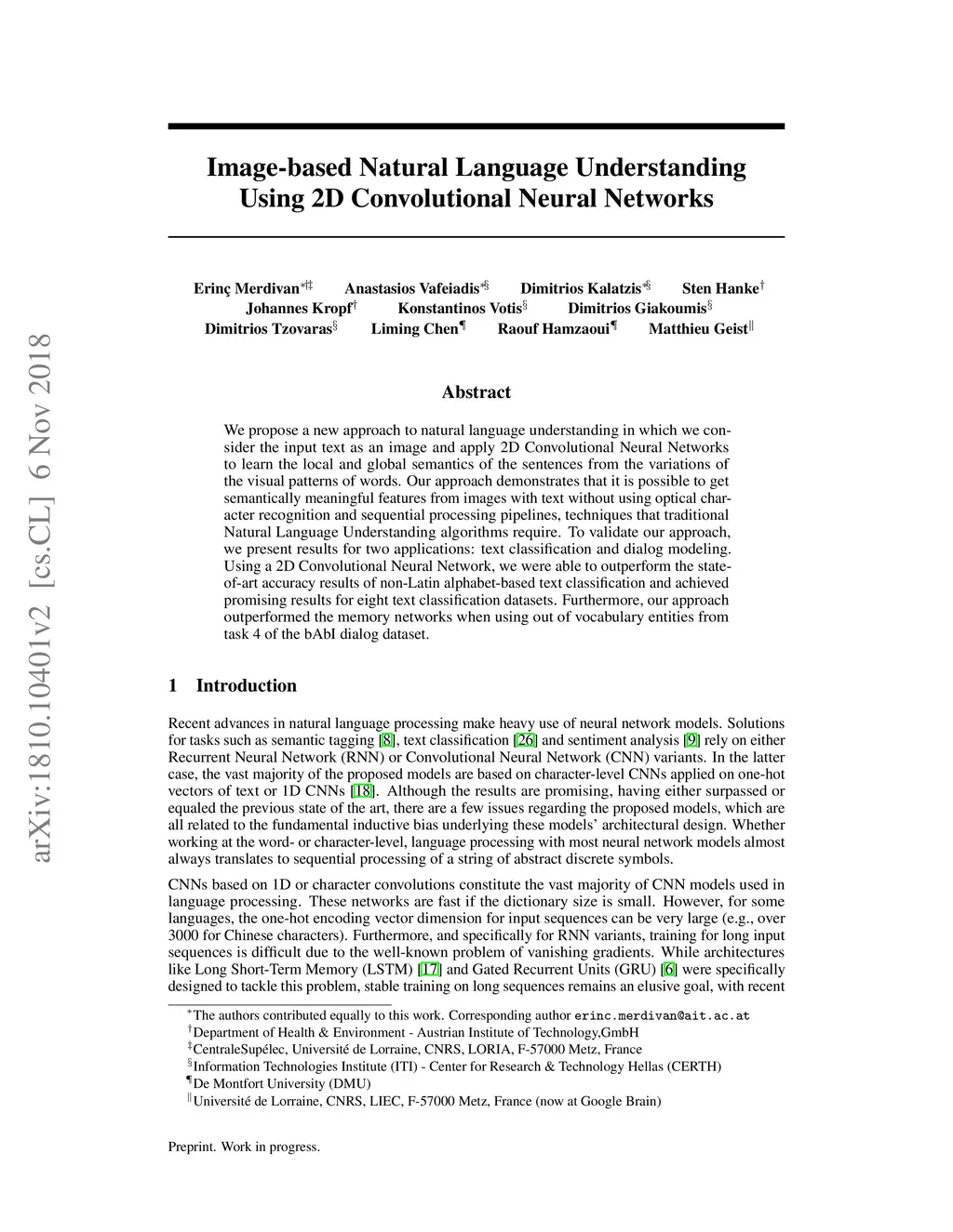 Image-based Natural Language Understanding Using 2D Convolutional Neural