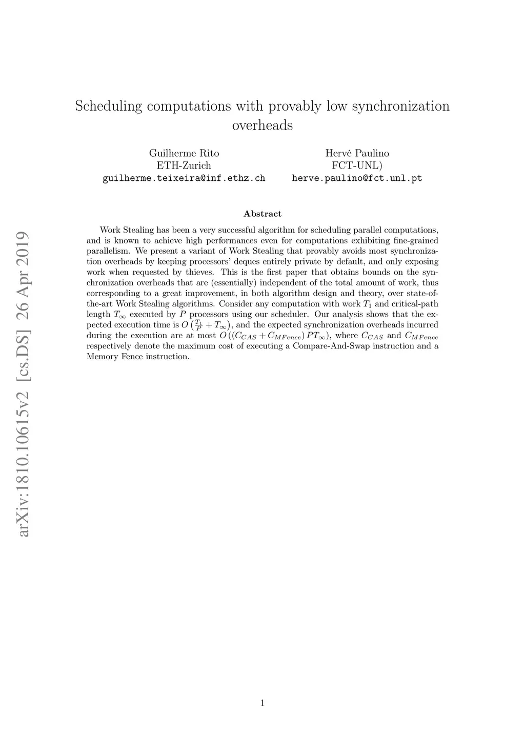 Work Stealing has been a very successful algorithm for scheduling parallel computations, and is known to achieve high performances even for computations exhibiting fine-grained parallelism. We present a variant of \ws\ that provably avoids most synchronization overheads by keeping processors' deques entirely private by default, and only exposing work when requested by thieves. This is the first paper that obtains bounds on the synchronization overheads that are (essentially) independent of the total amount of work, thus corresponding to a great improvement, in both algorithm design and theory, over state-of-the-art \ws\ algorithms. Consider any computation with work and critical-path length executed by processors using our scheduler. Our analysis shows that the expected execution time is , and the expected synchronization overheads incurred during the execution are at most , where and respectively denote the maximum cost of executing a Compare-And-Swap instruction and a Memory Fence instruction.