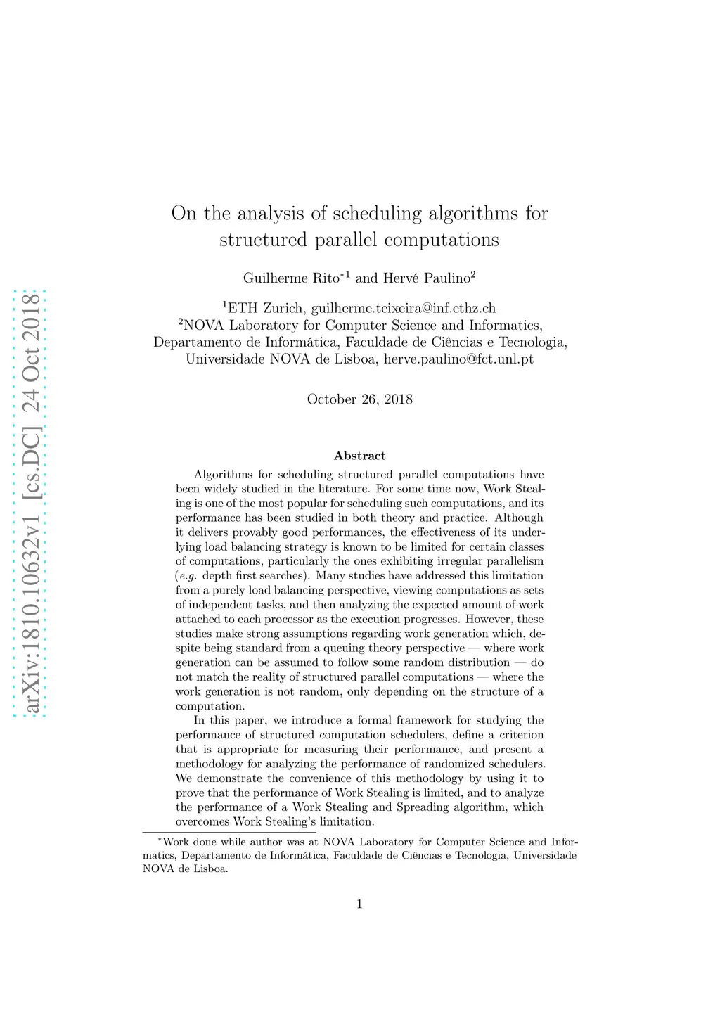 Algorithms for scheduling structured parallel computations have been widely studied in the literature. For some time now, Work Stealing is one of the most popular for scheduling such computations, and its performance has been studied in both theory and practice. Although it delivers provably good performances, the effectiveness of its underlying load balancing strategy is known to be limited for certain classes of computations, particularly the ones exhibiting irregular parallelism (e.g. depth first searches). Many studies have addressed this limitation from a purely load balancing perspective, viewing computations as sets of independent tasks, and then analyzing the expected amount of work attached to each processor as the execution progresses. However, these studies make strong assumptions regarding work generation which, despite being standard from a queuing theory perspective --- where work generation can be assumed to follow some random distribution --- do not match the reality of structured parallel computations --- where the work generation is not random, only depending on the structure of a computation. In this paper, we introduce a formal framework for studying the performance of structured computation schedulers, define a criterion that is appropriate for measuring their performance, and present a methodology for analyzing the performance of randomized schedulers. We demonstrate the convenience of this methodology by using it to prove that the performance of Work Stealing is limited, and to analyze the performance of a Work Stealing and Spreading algorithm, which overcomes Work Stealing's limitation.