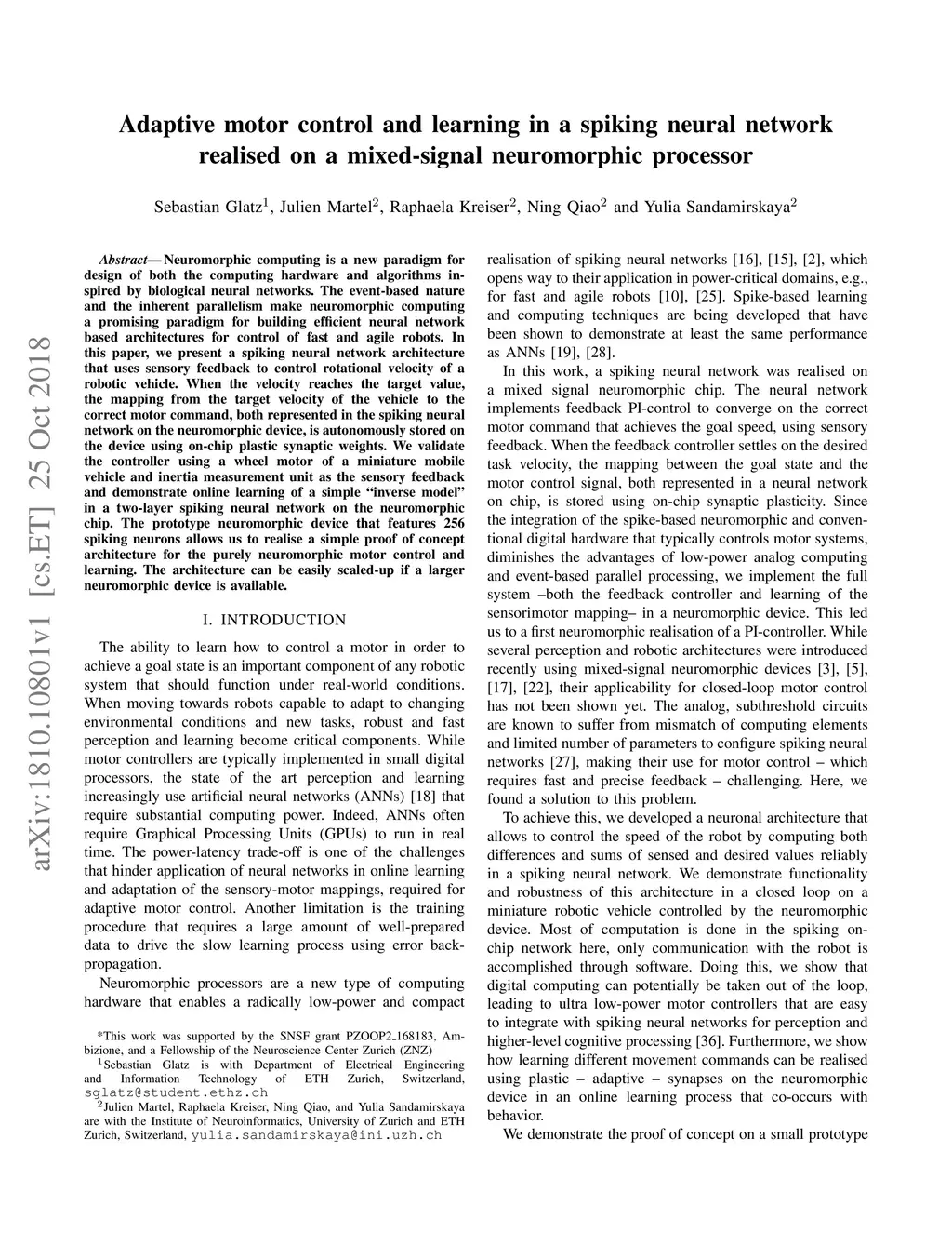 Adaptive motor control and learning in a spiking neural network realised