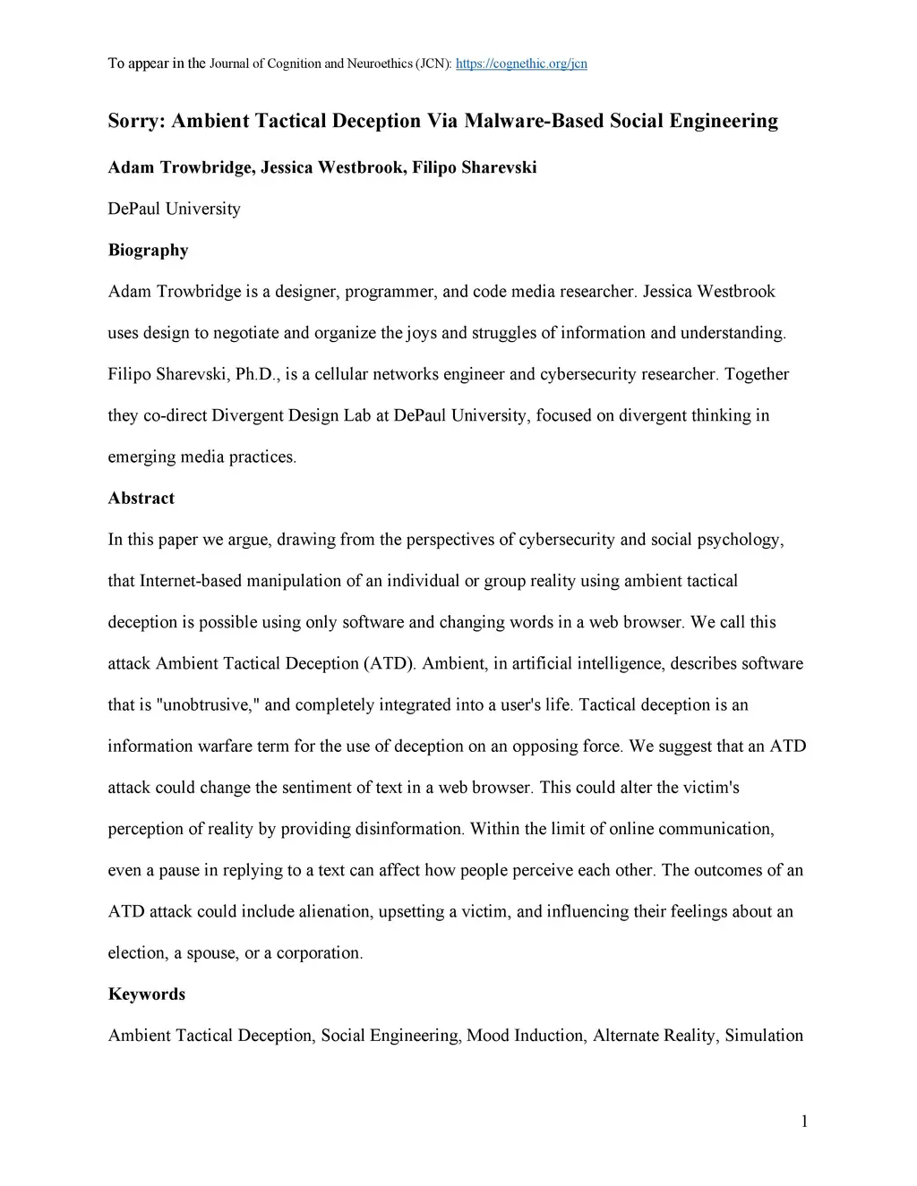 Sorry: Ambient Tactical Deception Via Malware-Based Social Engineering