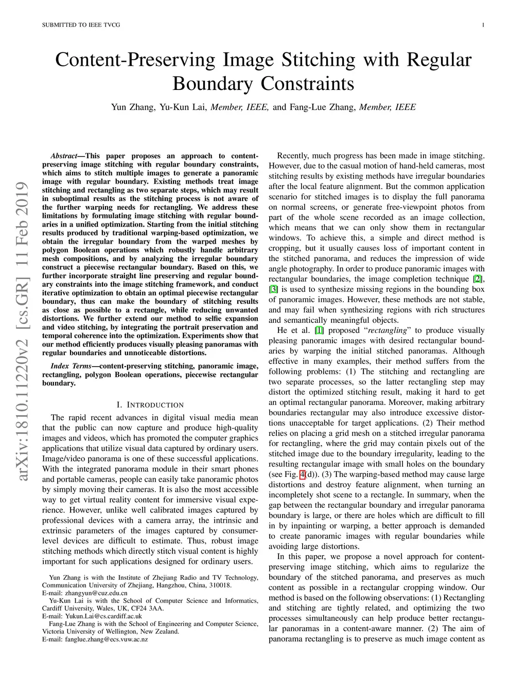 Content-Preserving Image Stitching with Regular Boundary Constraints