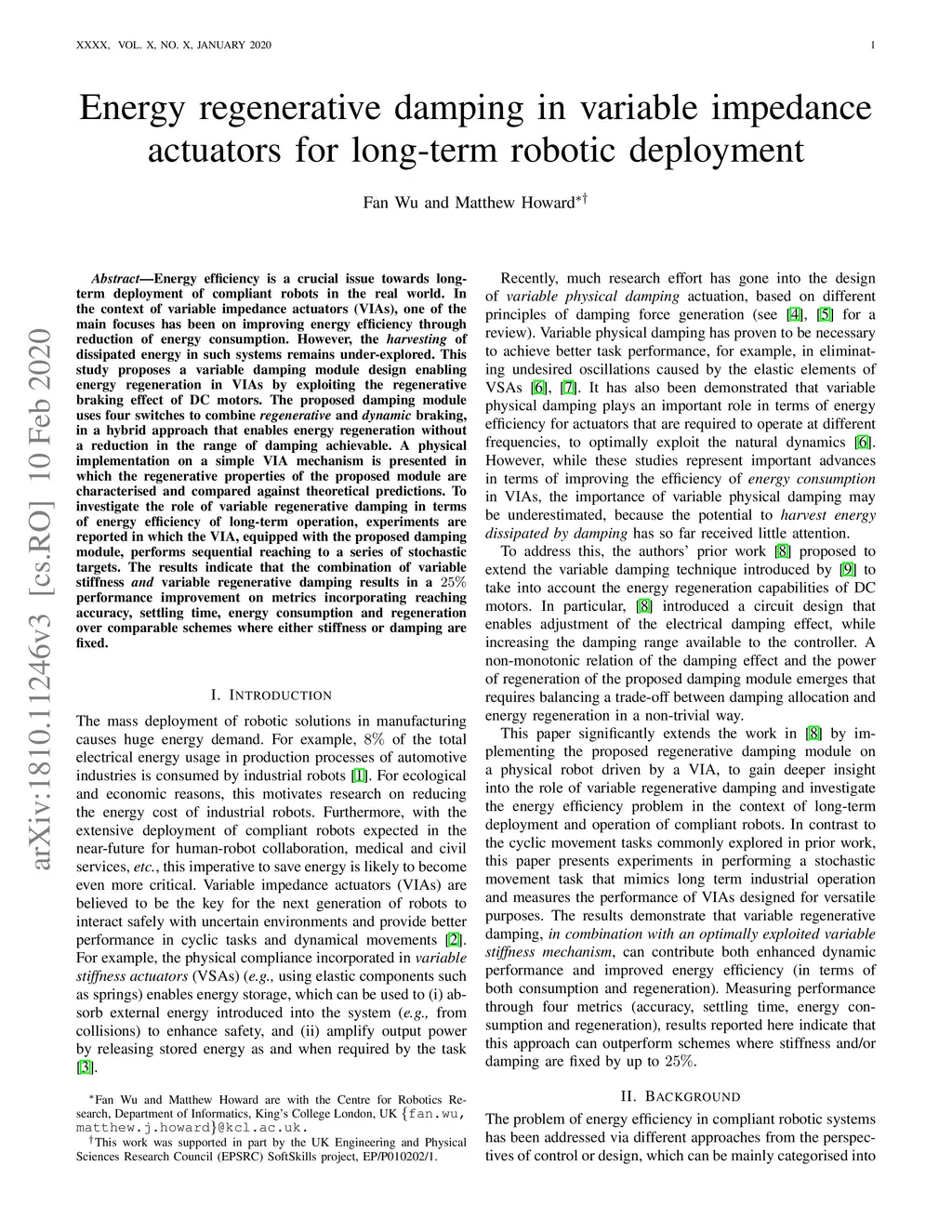 Energy regenerative damping in variable impedance actuators for
