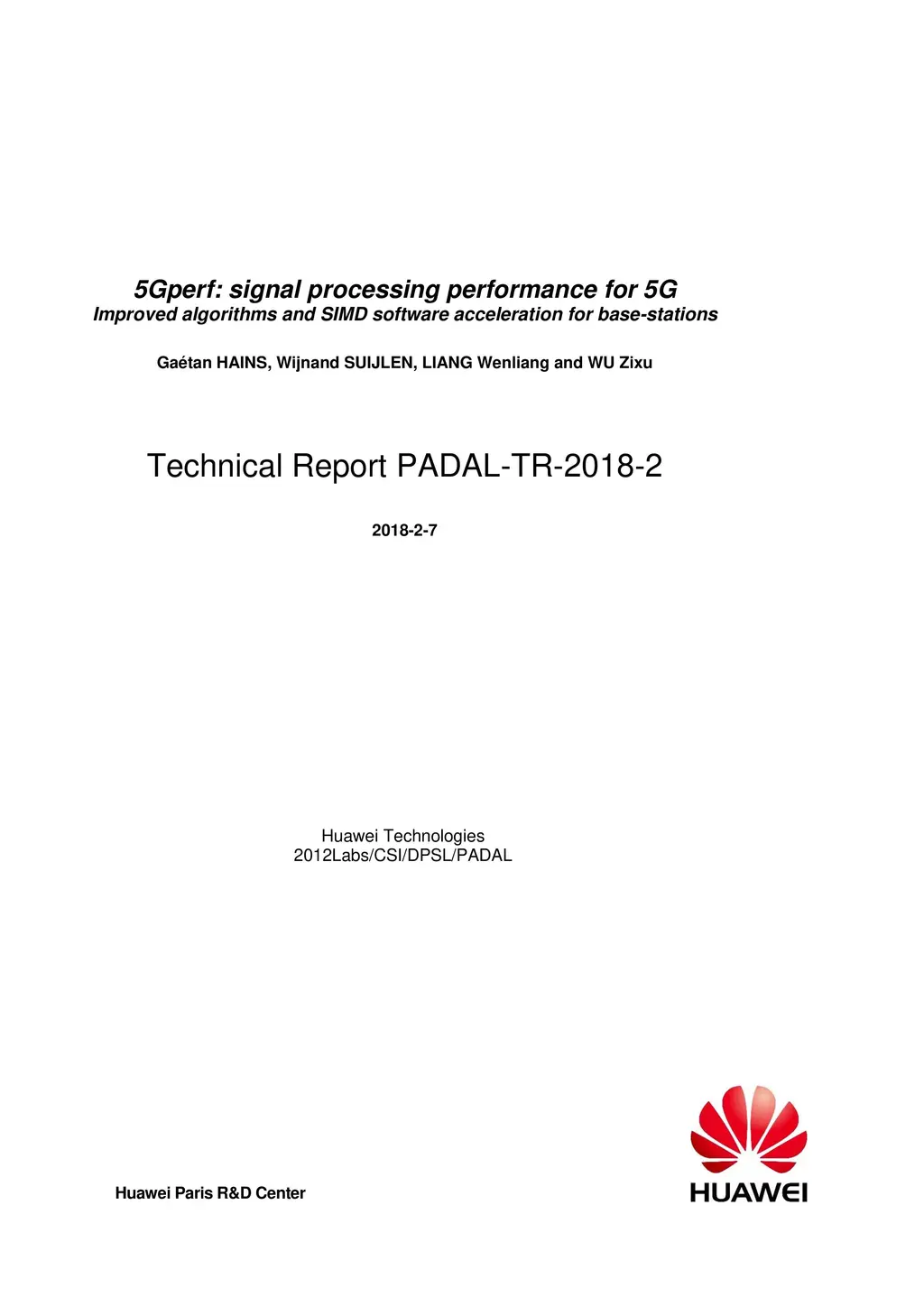 The 5Gperf project was conducted by Huawei research teams in 2016-17. It was concerned with the acceleration of signal-processing algorithms for a 5G base-station prototype. It improved on already optimized SIMD-parallel CPU algorithms and designed a new software tool for higher programmer productivity when converting MATLAB code to optimized C