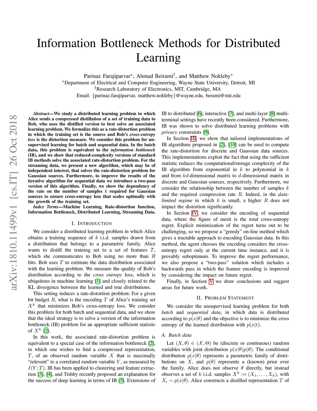 Information Bottleneck Methods for Distributed Learning