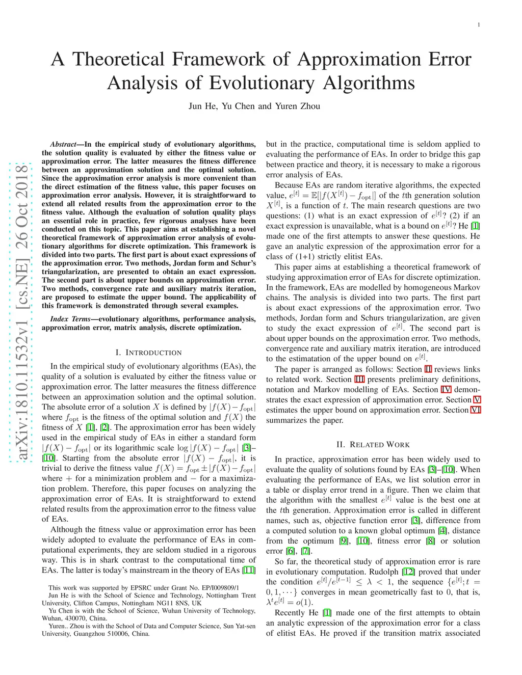 A Theoretical Framework of Approximation Error Analysis of Evolutionary