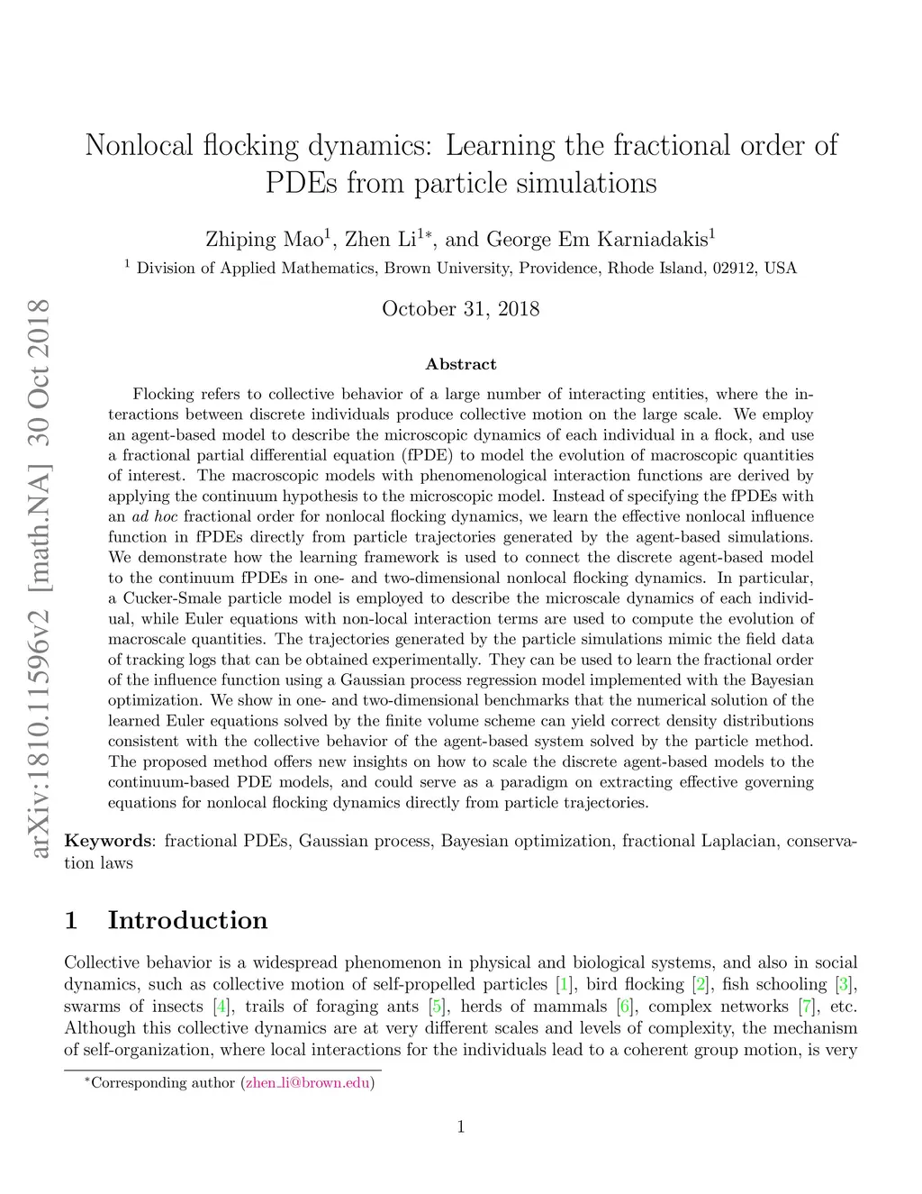Nonlocal flocking dynamics: Learning the fractional order of PDEs from
