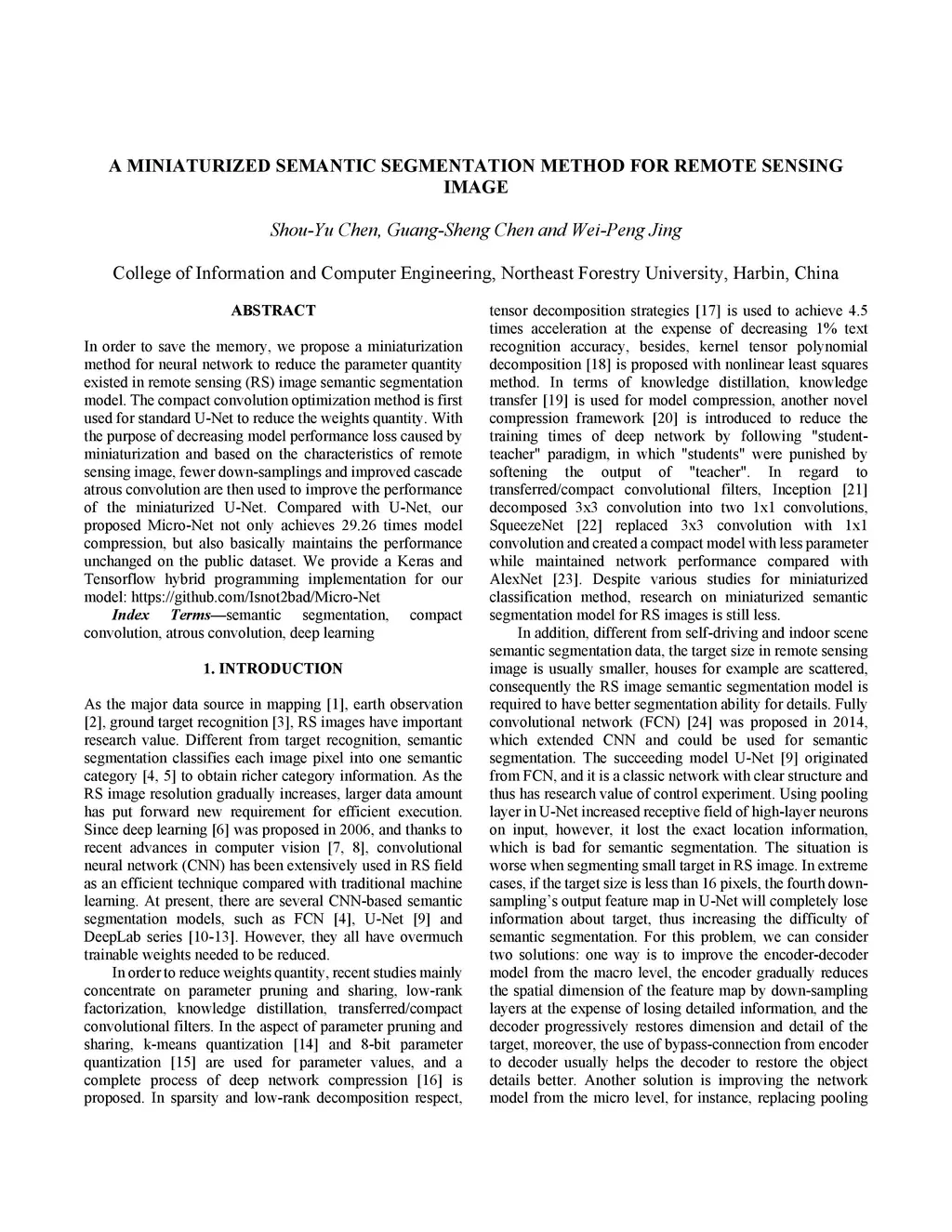 A Miniaturized Semantic Segmentation Method for Remote Sensing Image
